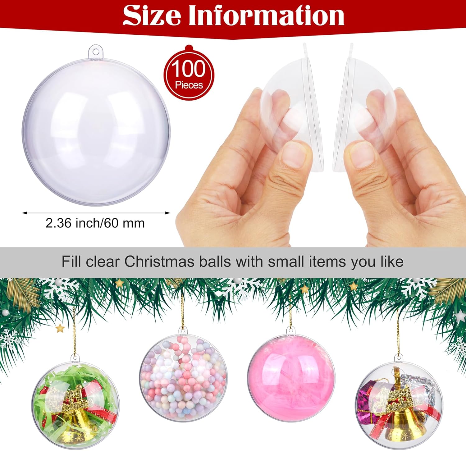 ANVAVO 100 Pieces 60mm Christmas Clear Plastic Fillable Ball Ornaments DIY Craft Transparent Baubles Shatterproof Christmas Tree Hanging Ornaments for Christmas New Years Birthday Wedding Home Decor