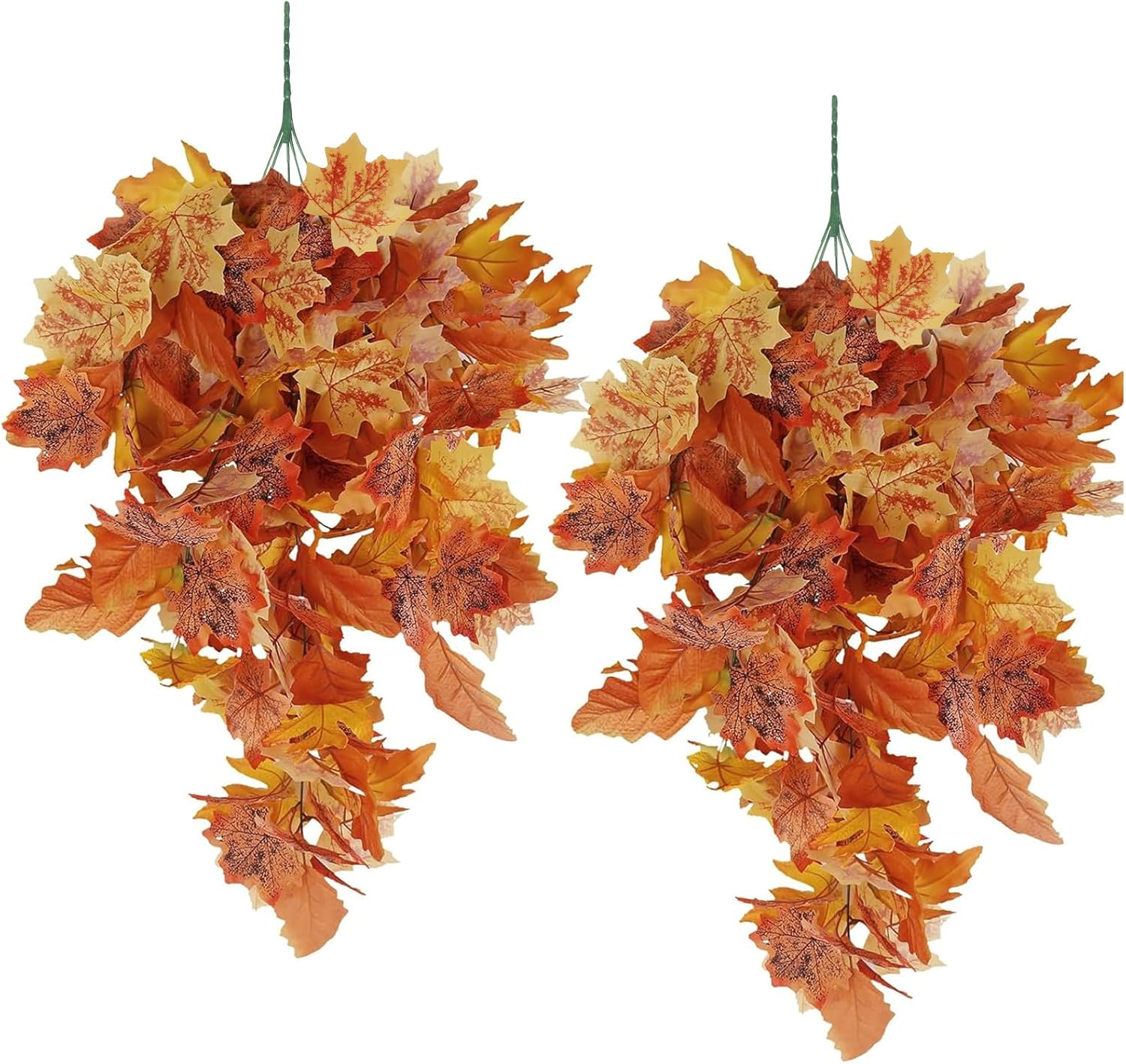 • [Package include]2pcs fall maple leaf hanging plants,the each length of the artificial Hanging plant is approx. 2.5Ft long,and it has 5 flexible stems and a few branches with orange leaves.You can easily hang artificial hanging maple vines anywhere you want and it is a great choice for autumn decoration .