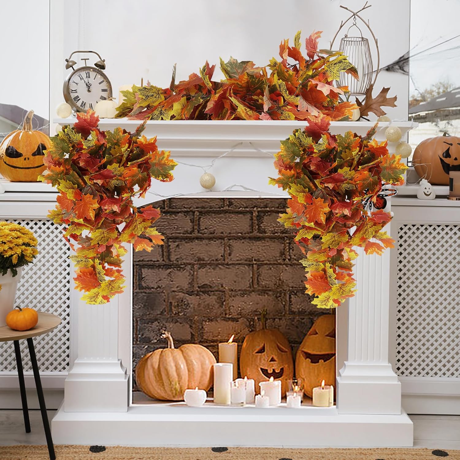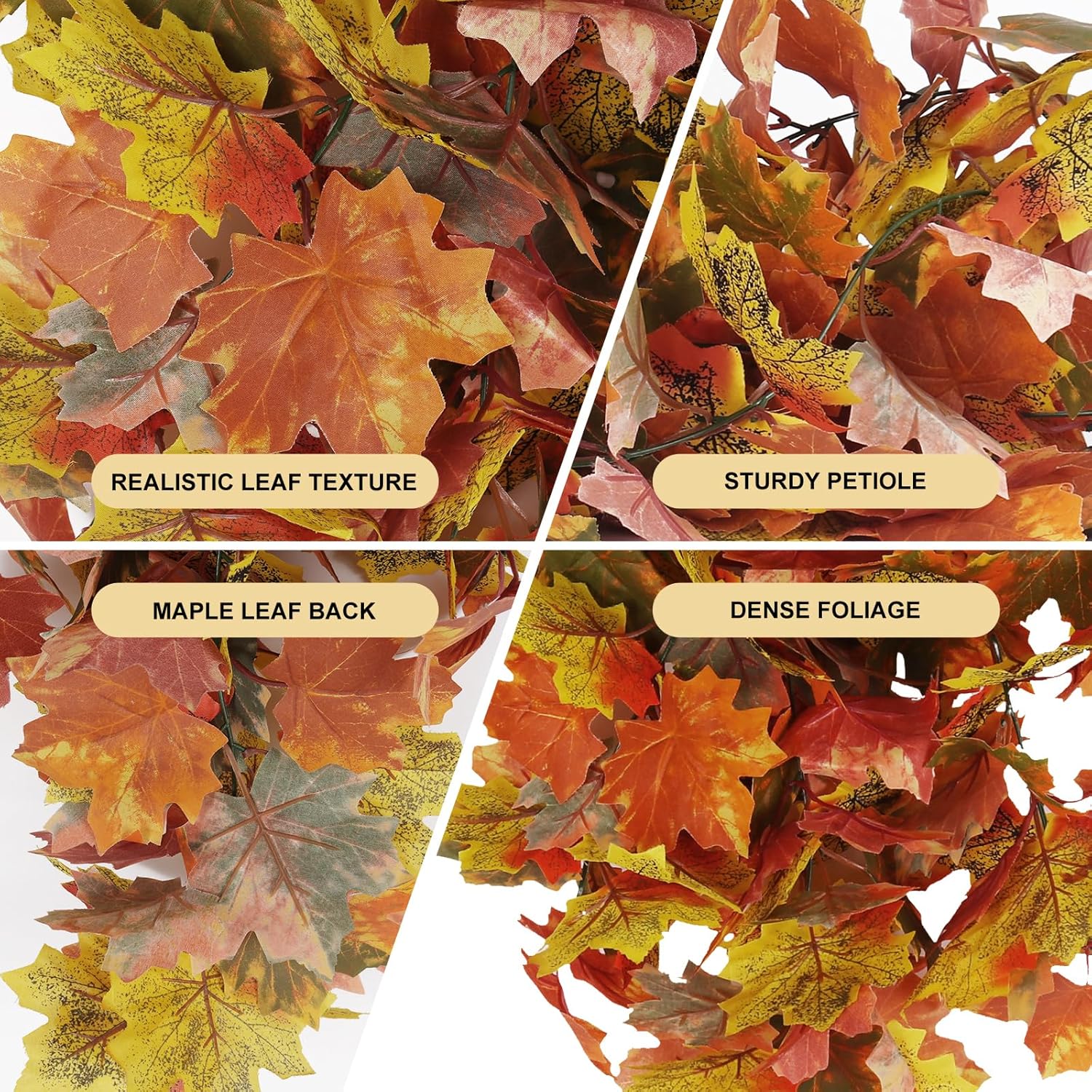 • [Perfect Fall Decor]Hanging maple leaves plants are the perfect decoration for autumn and Thanksgiving day,the fall maple leaf garlands can create a festival atmosphere for you home.Artificial hanging maple leaves plants can be applied to indoor and outdoor autumn decorations.