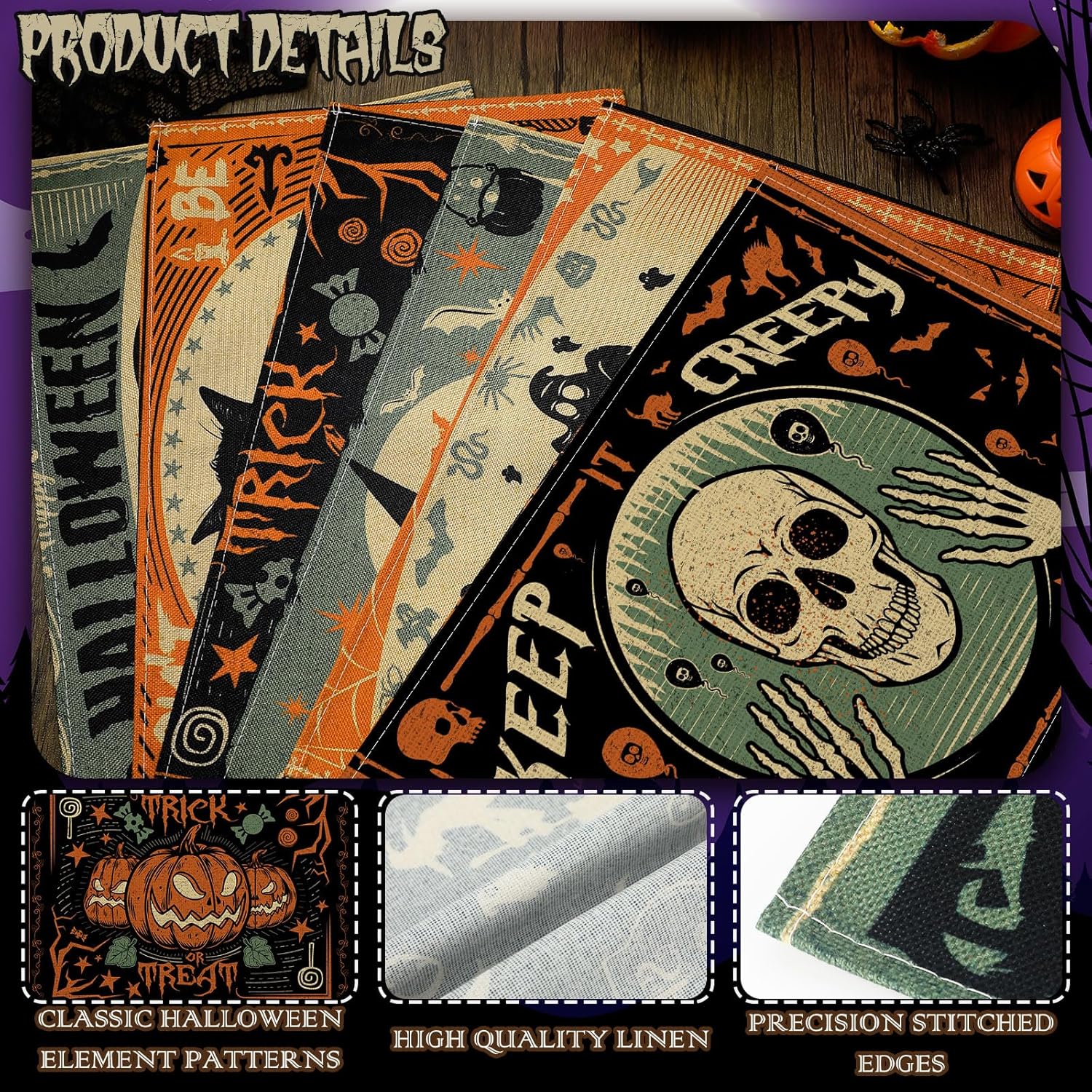 • Halloween Design: our Halloween table mats have a beautiful design of Halloween style, different from other placemats, spooky design style will add a scary holiday feeling to your home, but also bring you more choices for Halloween home decoration