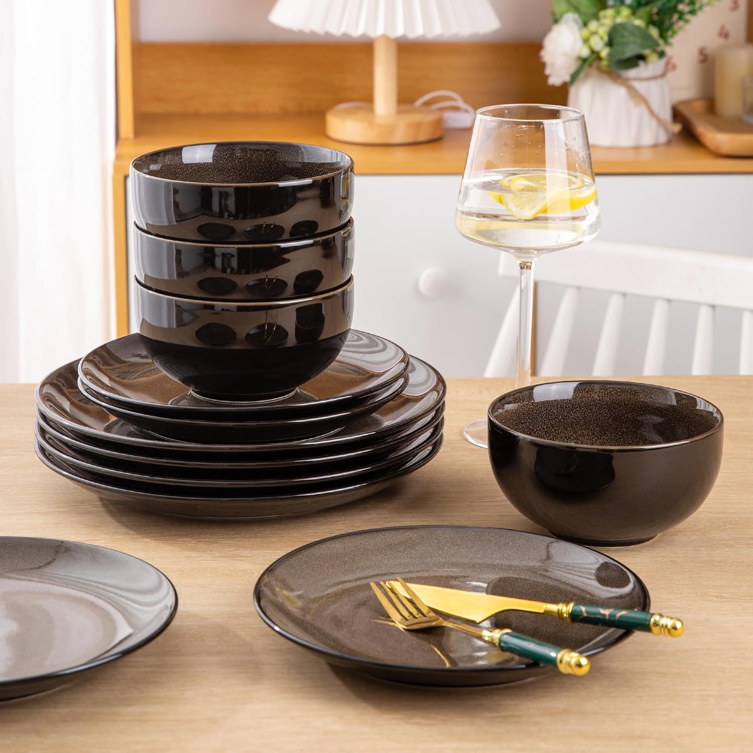 • 【SERVICE FOR 4 】4 pcs of 10.5" dinner plates, 4 pcs of 8.5" salad/appetizer/dessert plates, and 4 pcs of 26 oz soup/cereal/ceramic bowls. It makes a great housewarming gift for newlyweds who appreciate quality and style, or for anyone who has recently moved into a new home or apartment. With this set, you can enjoy your meals in style and create beautiful memories with your loved ones.