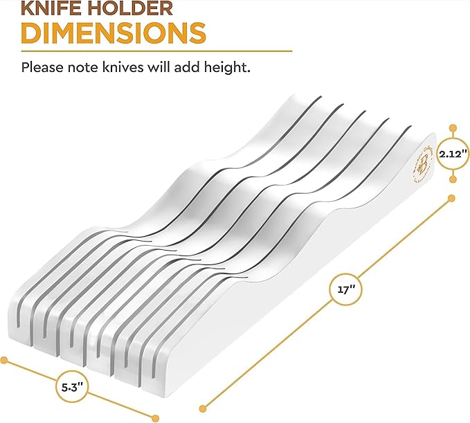 • ORGANIZES: Enjoy the results of owning this knife drawer organizer — your utensils drawer will always look great. You can see and access any knife easily.