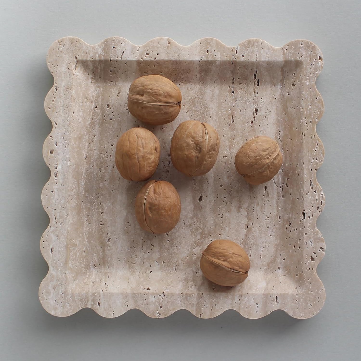 • ➤100% Natural Travertine: Made from solid beige travertine, with irregular holes and a matte finish, this decorative tray ensures durability and long-lasting enjoyment