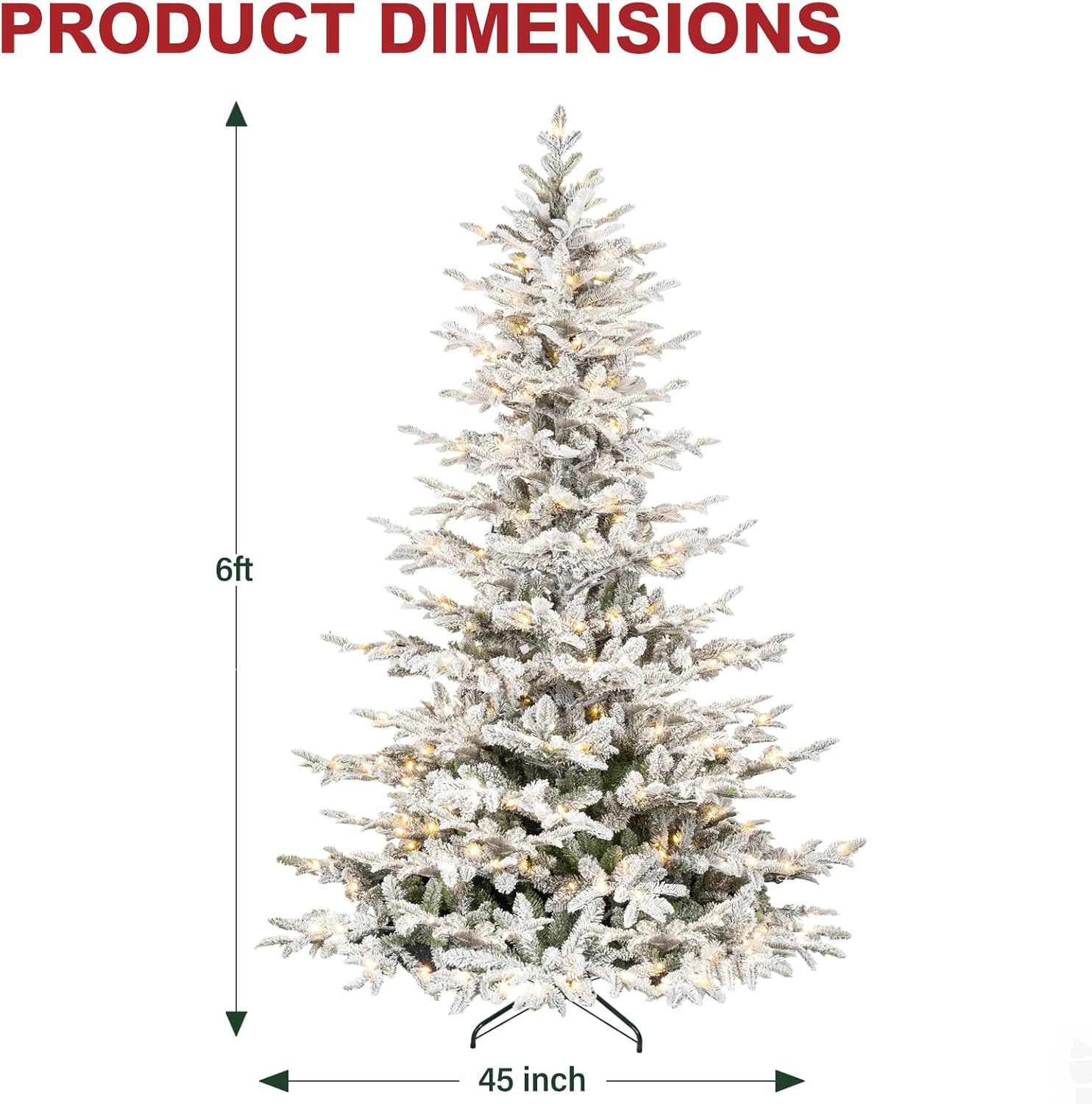 • STURDY CONSTRUCTION: Standing at a height of 7.5 feet with a 59 inch diameter at the base, this snow Christmas tree features all-metal construction and comes with a foldable metal tree stand. It strikes the perfect balance between grandeur and versatility.