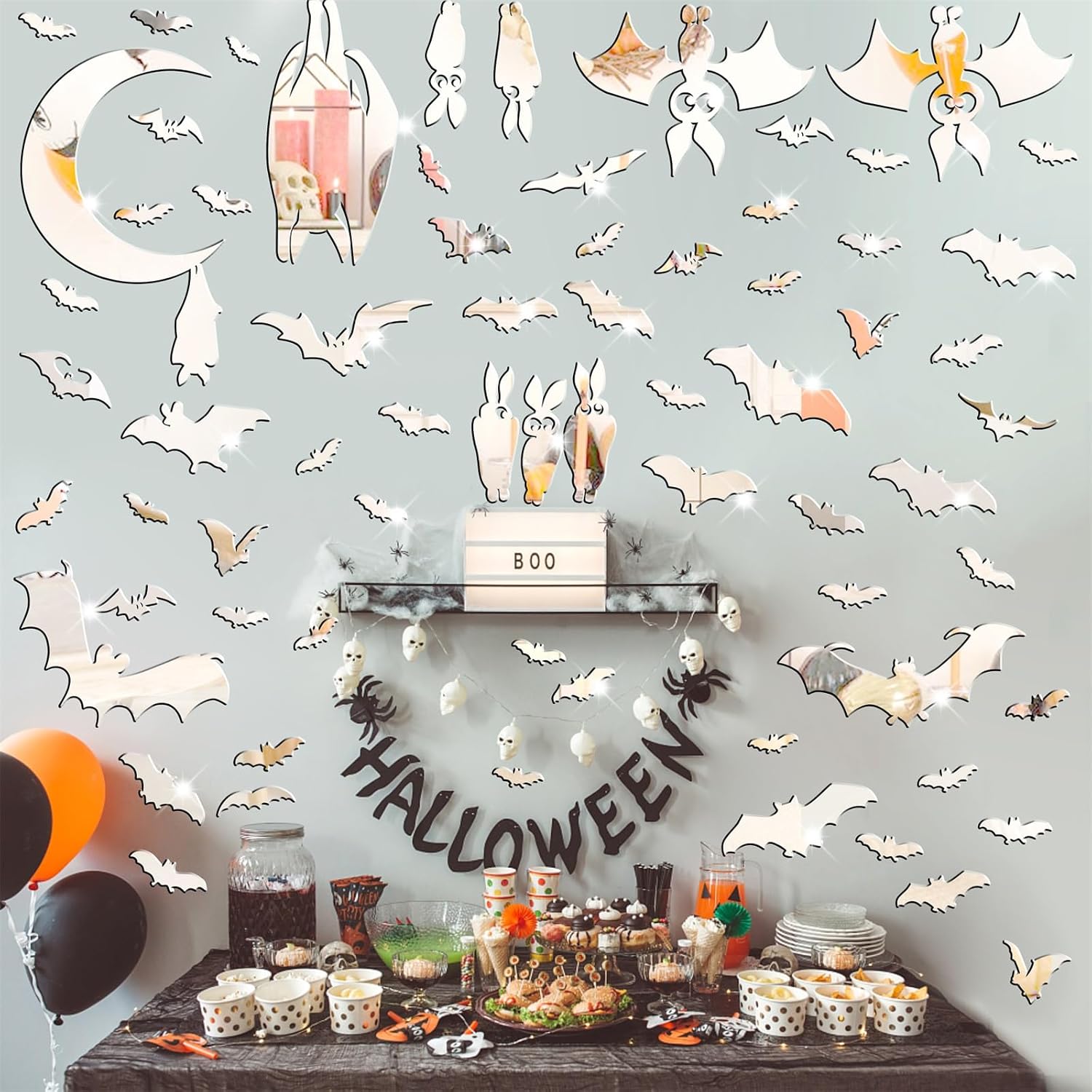 • Halloween bats acrylic mirror wall decals are removable without sticky residue.