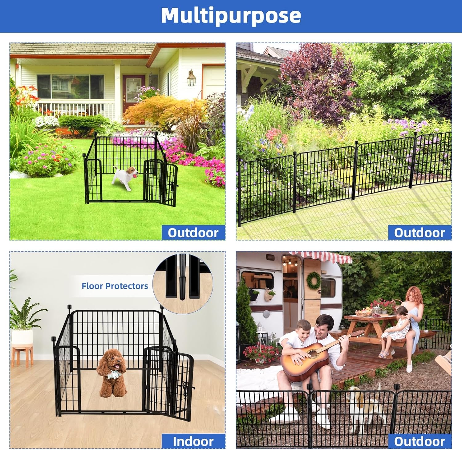 • Wide Application: 1)This Decorative Garden Fence is Suitable as a Lawns, Vegetable Garden Borders . 2)The Fences Can be Used as Outdoor Pet's Fence, and It also Can be Used as Indoors Dog Playpen, the Bottom of The Pole is Fitted with An Anti-friction Sleeve, That Won't Scratch Your Floors. 3) As Camping Fence When You RV Trip