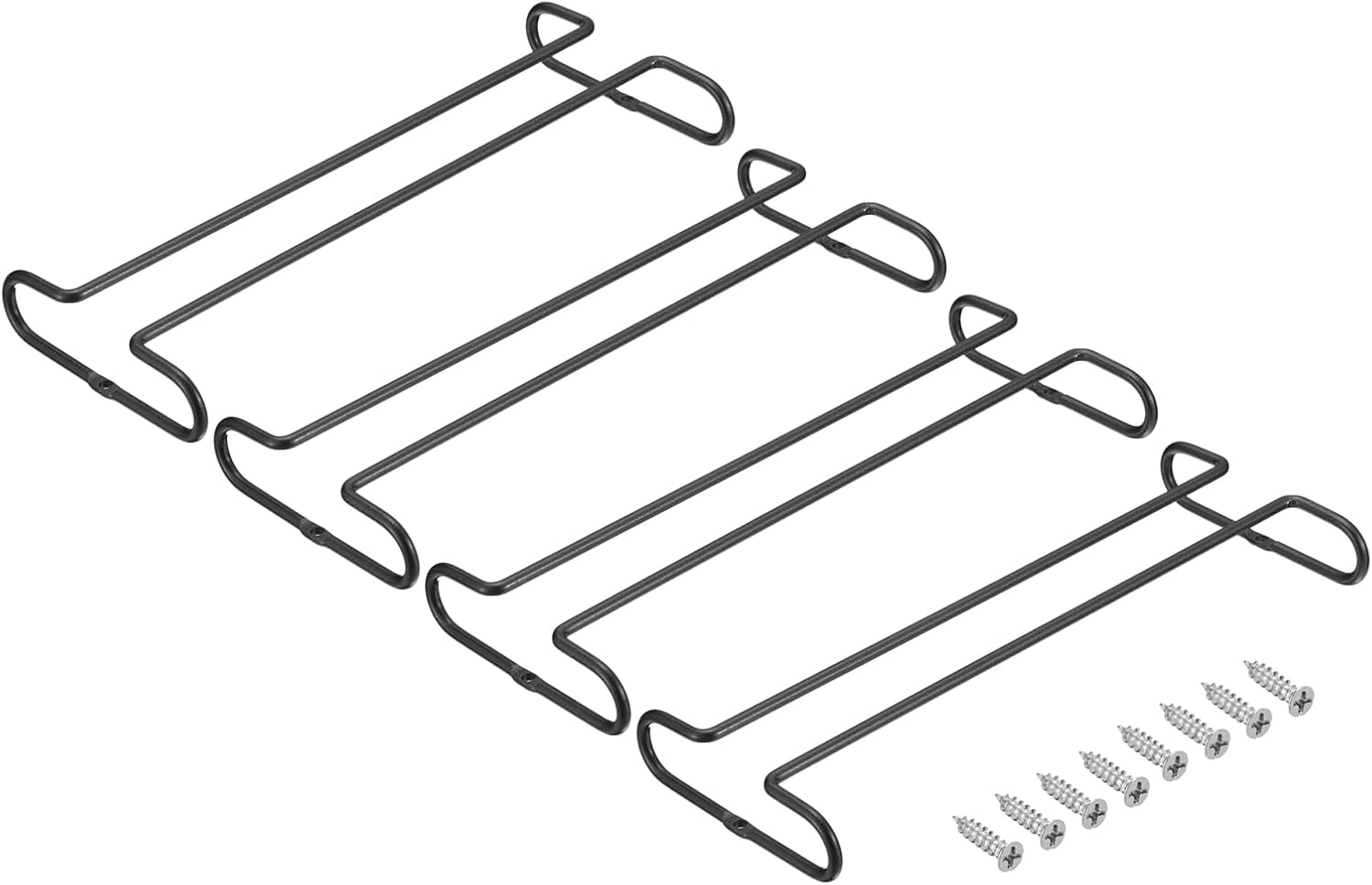 uxcell Wine Glass Rack Under Cabinet, 4Pcs 10-Inch Stemware Wine Glass Hanging Rack Stainless Steel Wine Glass Organizer Storage Hanger for 5.5mm Stemware Column, Black