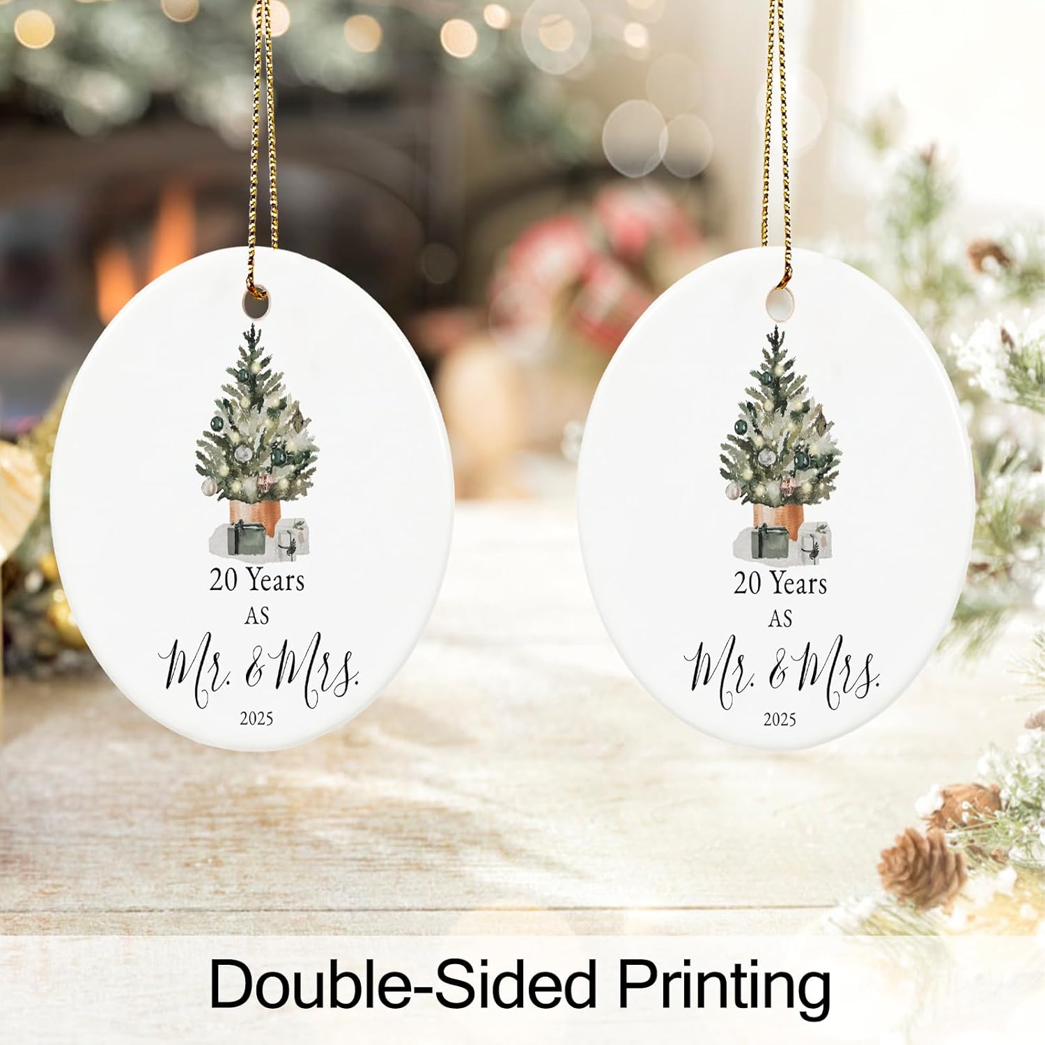 • Wonderful Christmas Ornament- 20 years as mr and mrs ornament perfect decoration to holidays in home. Hang the 20 year anniversary ornament on the window,wall,Christmas tree,enhancing your holiday decor.and double-sided printing can see its beauty from any angle.