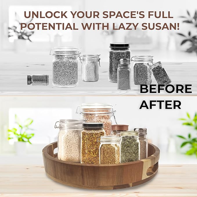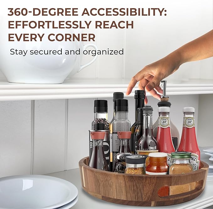 • π—˜π—«π—€π—¨π—œπ—¦π—œπ—§π—˜ 𝗖π—₯π—”π—™π—§π—¦π— π—”π—‘π—¦π—›π—œπ—£ π—œπ—‘ 𝟭𝟬𝟬% π—”π—–π—”π—–π—œπ—” π—ͺ𝗒𝗒𝗗 - Elevate your space with our 12-inch wooden lazy susan for dining table, making the lazy susan spice rack organizer for cabinet a perfect addition to your kitchen, bedroom, or bathroom. No assembly required.