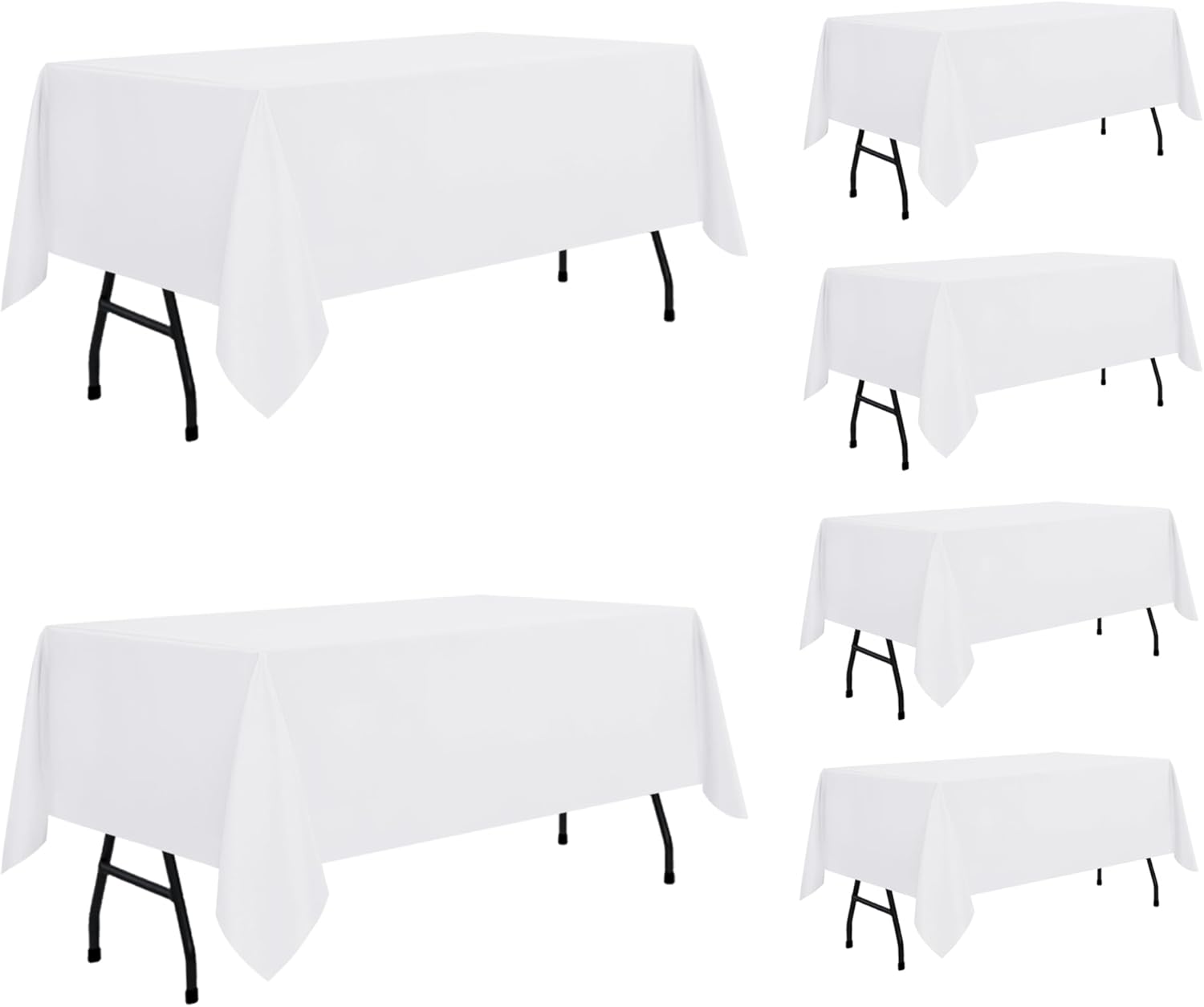 sancua 6 Pack White Tablecloth 60 x 84 Inch, Rectangle Table Cloth for 4ft Tables - Stain and Wrinkle Resistant Washable Polyester Table Cover for Dining Wedding Banquet Party Buffet Restaurant