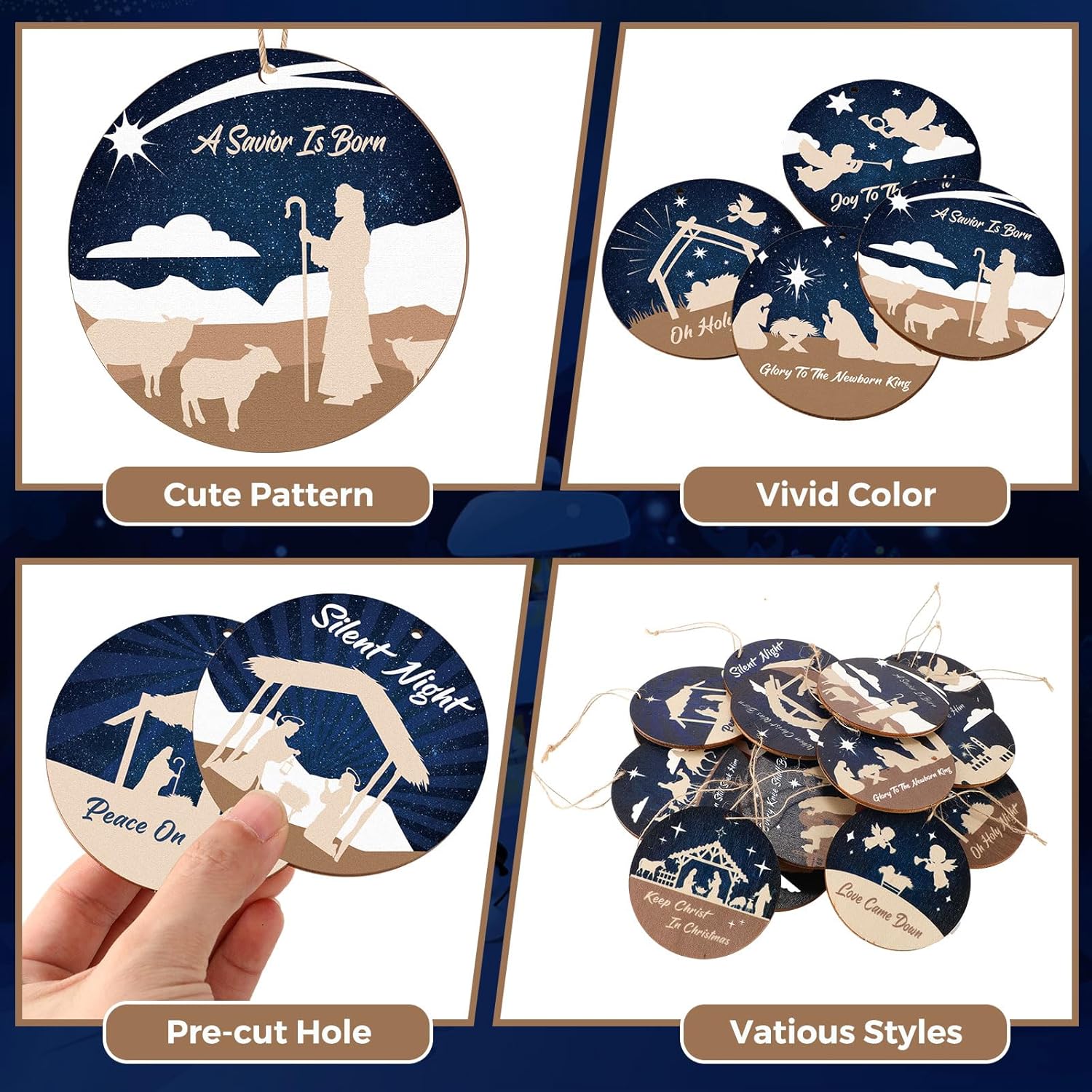 • Fine Workmanship: constructed from wood, these nativity scene ornaments are lightweight, making them easy to hang without added tension on your tree branches; Additionally, these ornaments are sturdy and will not break easily, even when dropped, with clear printing, serviceable for long time use
