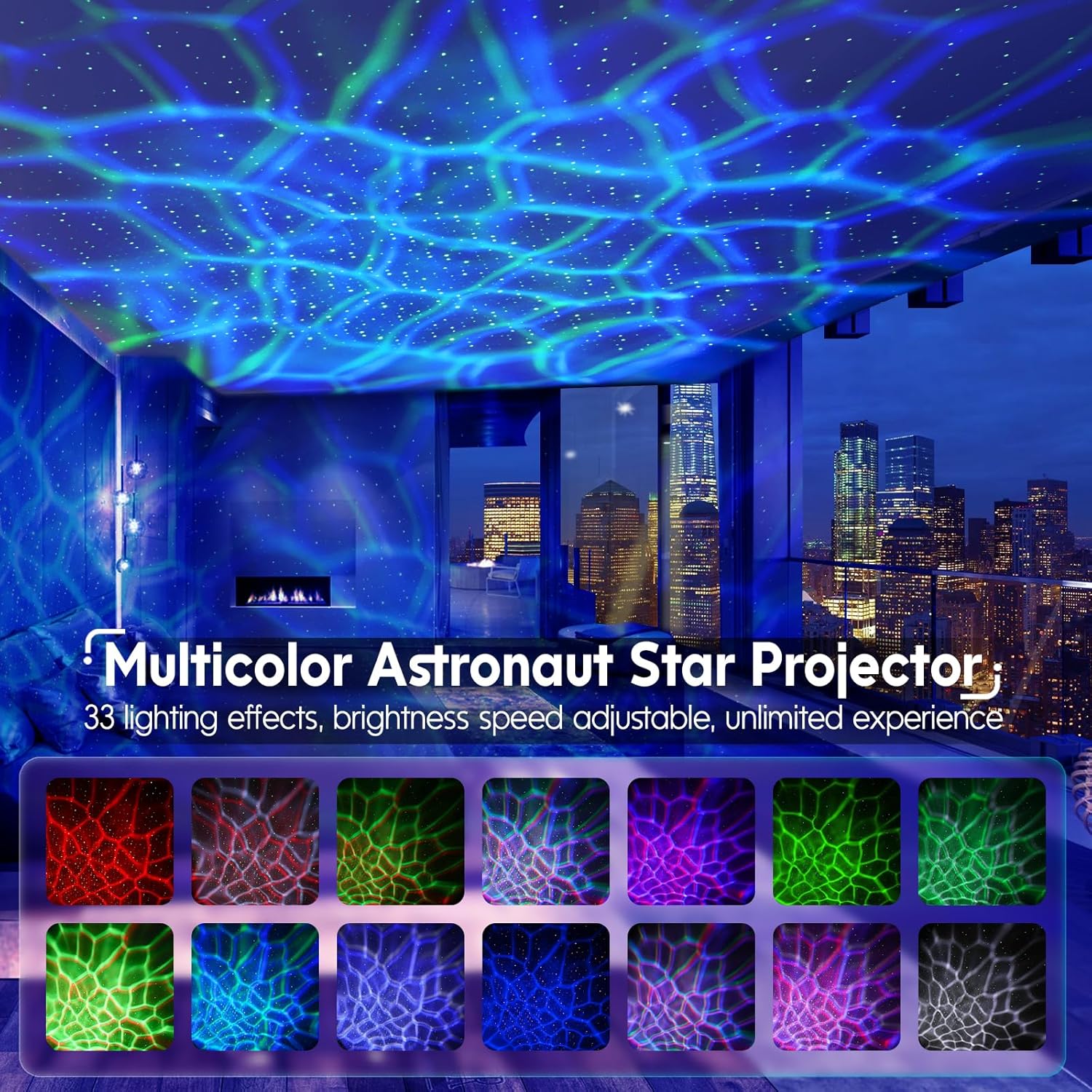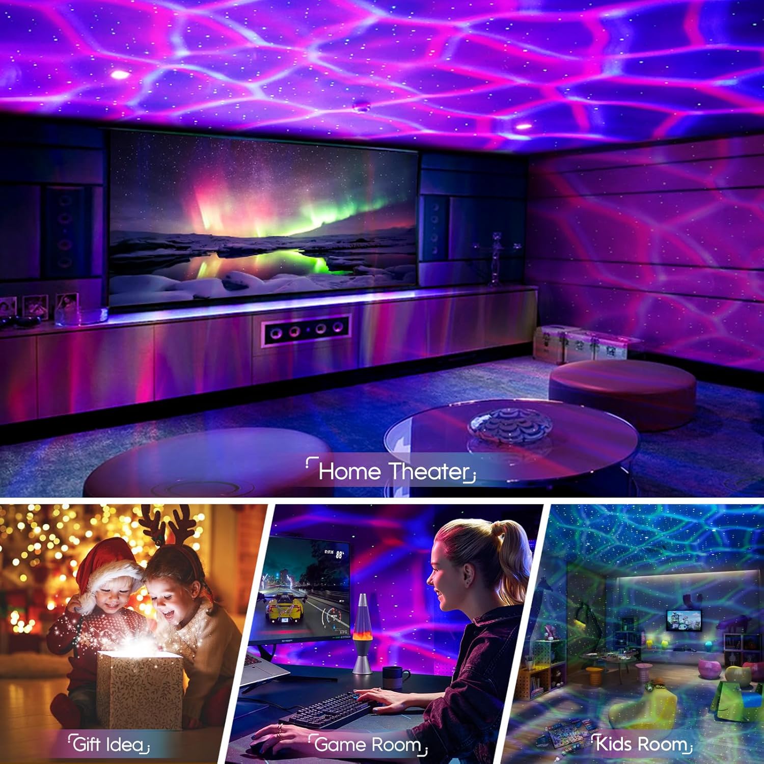 • Color Changing Light Effects & Sound Activated: Our galaxy projector LED lights for bedroom display multiple colors on the ceiling or wall simultaneously, unlike traditional galaxy lights. A colorful combination of star lights brings a strong visual impact for Halloween and Christmas decorations. You can activate the sound function from the remote, and the color of the LED Christmas lights will change in response to the music or clapping hands, creating a fun and energetic party atmosphere