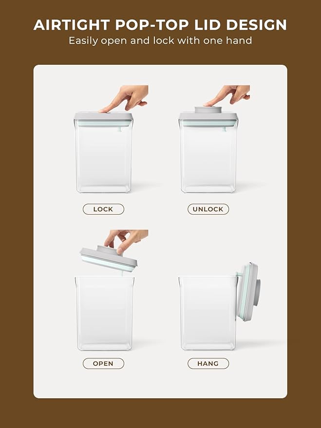 • Convenient One-button Lid: Easily open and close the air tight cereal storage containers with a single button press. Keep your food fresh and bug-free with leakproof lids.