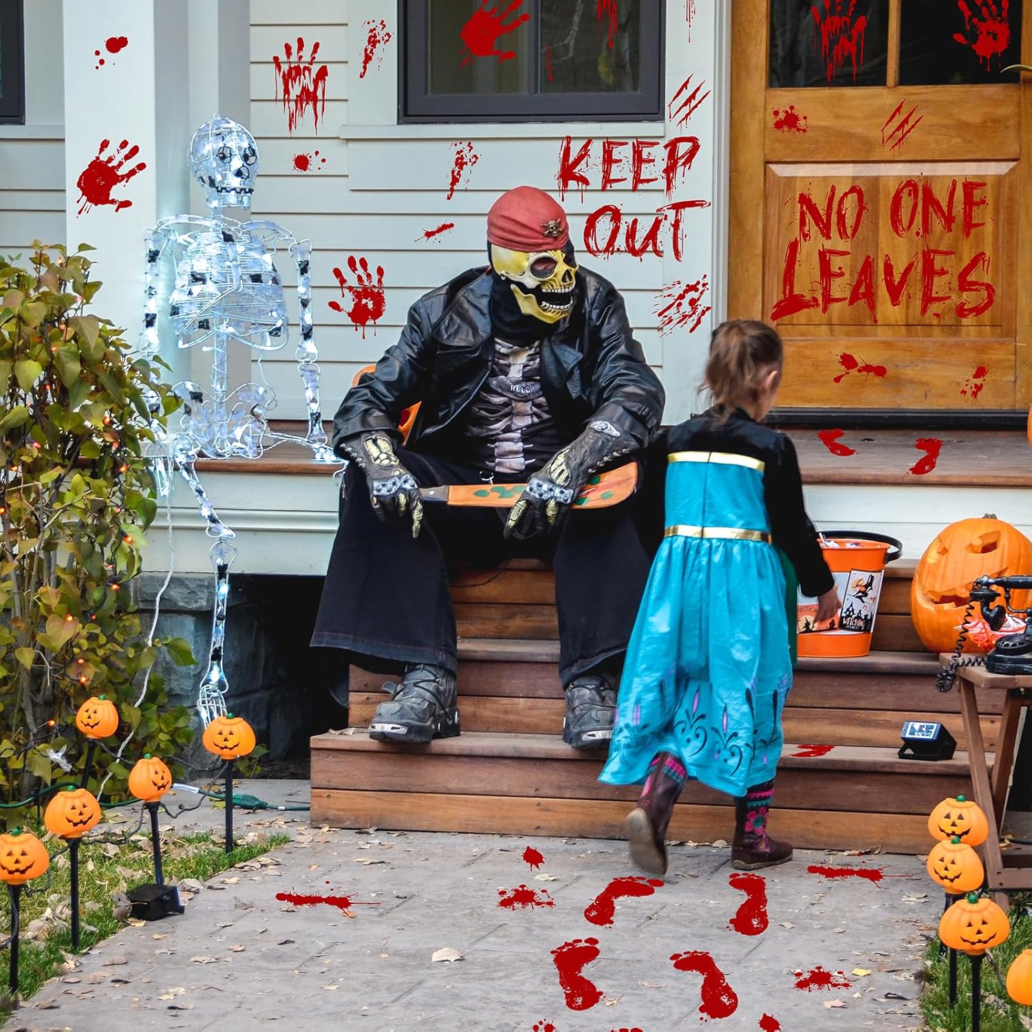 • Evoke a Spine-Tingling Atmosphere - These stickers are designed to evoke a spine-tingling atmosphere, especially in places where you want your guests to feel unnerved. Place them on the floor, in hallways, on stairs, on the steps leading to your door, or on pathways – they'll resemble the eerie traces left behind by an unknown entity, ensuring that your Halloween party or haunted house creates a genuinely hair-raising entrance.