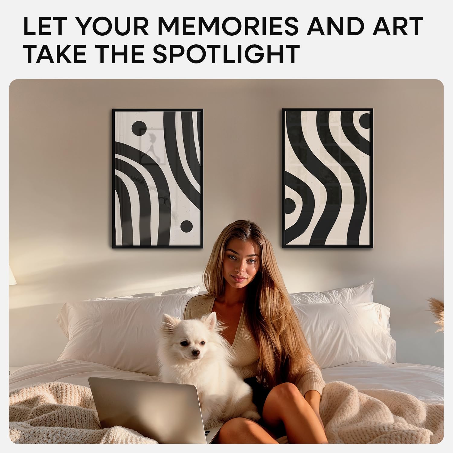 • MATTE BLACK. CLEAN AND MODERN. Defined by sharp edges and a smooth matte finish, this black aluminum frame suits contemporary, minimalist, or industrial interiors. A versatile choice for photos, prints, or posters.