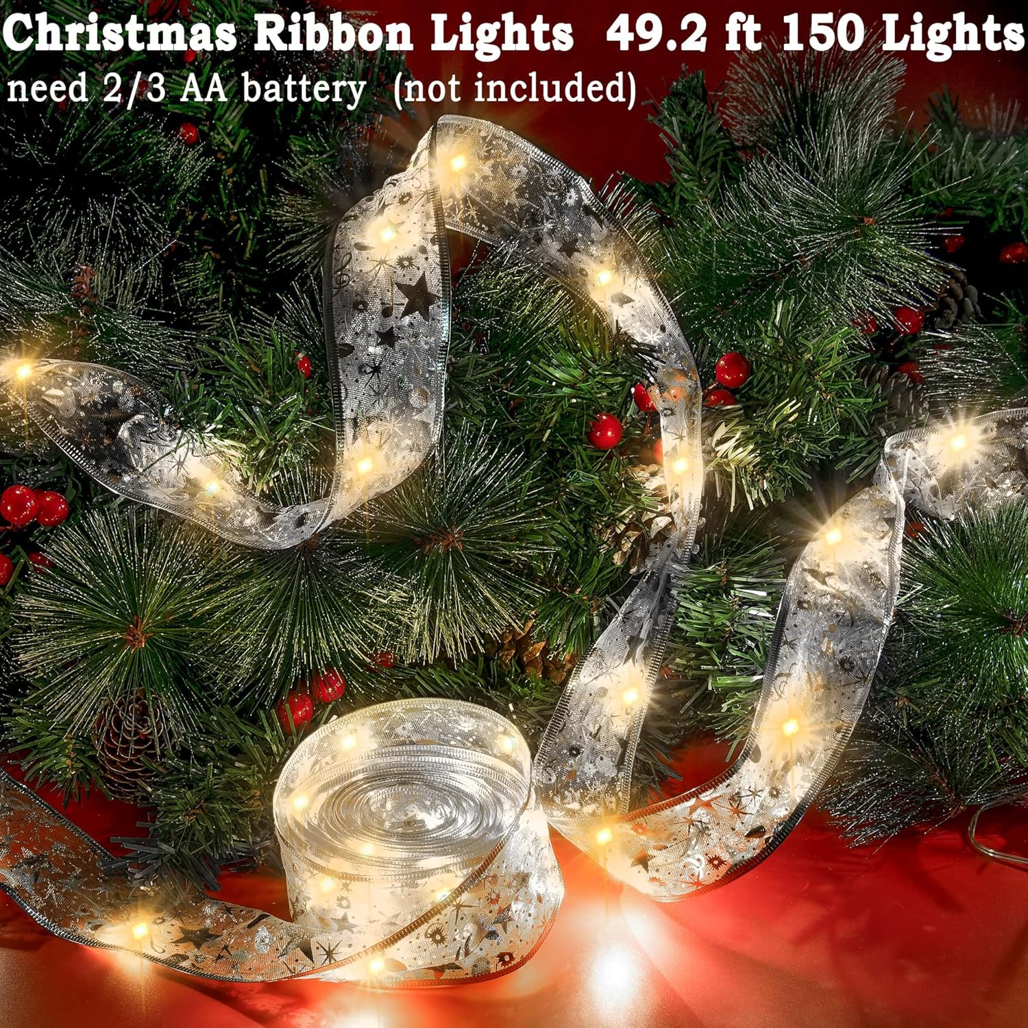 • 【 LED Christmas Ribbon String Lights 】- Powered by 3 × AA batteries, these ribbon string lights specially designed for Christmas trees are 33 feet long with 100 bright LEDs. The beautiful ribbon pattern and medium-sized LED bulbs add a cheerful and romantic touch to your Christmas Tree.