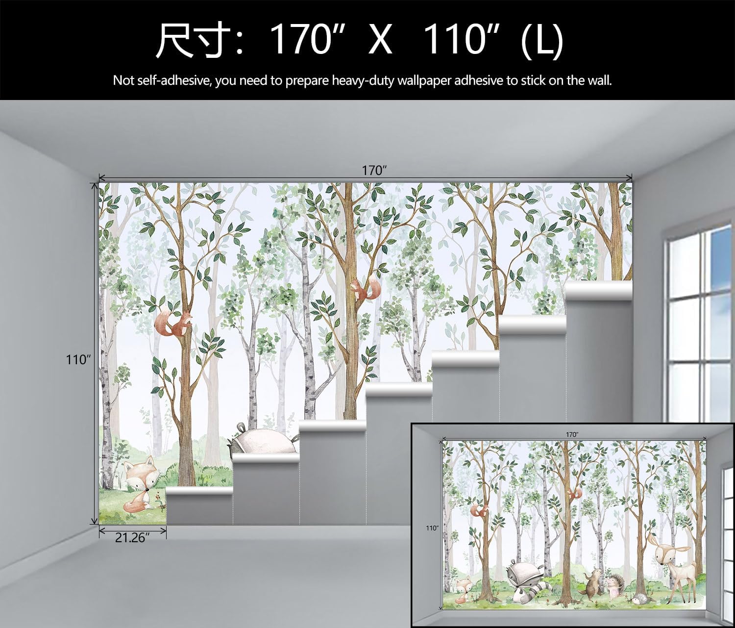 WFBHUA-Kids Wallpaper Watercolor Forest Cartoon Animals Wall Murals Suitable for Nursery Boys Girls Bedroom Room (Not Peel and Stick)