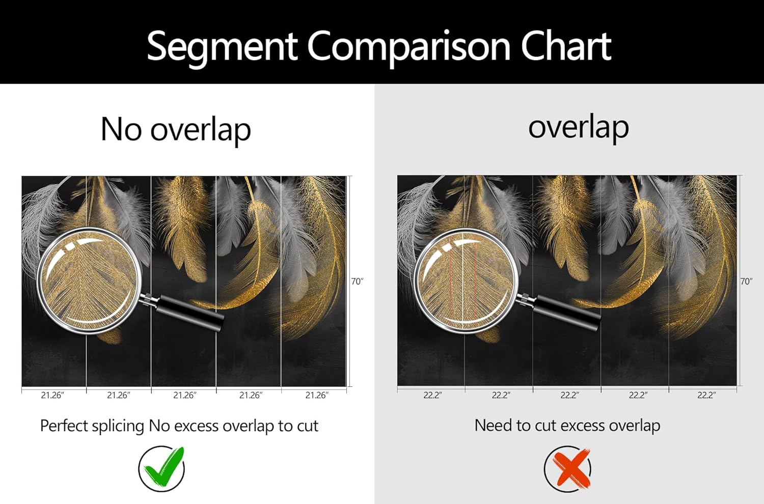 • Mural Size: The total size of this mural wallpaper is 106" x 70" / 270CM x 178CM (W x H), cut into 5 pieces, each measuring 21.26" x 70", for easy installation.