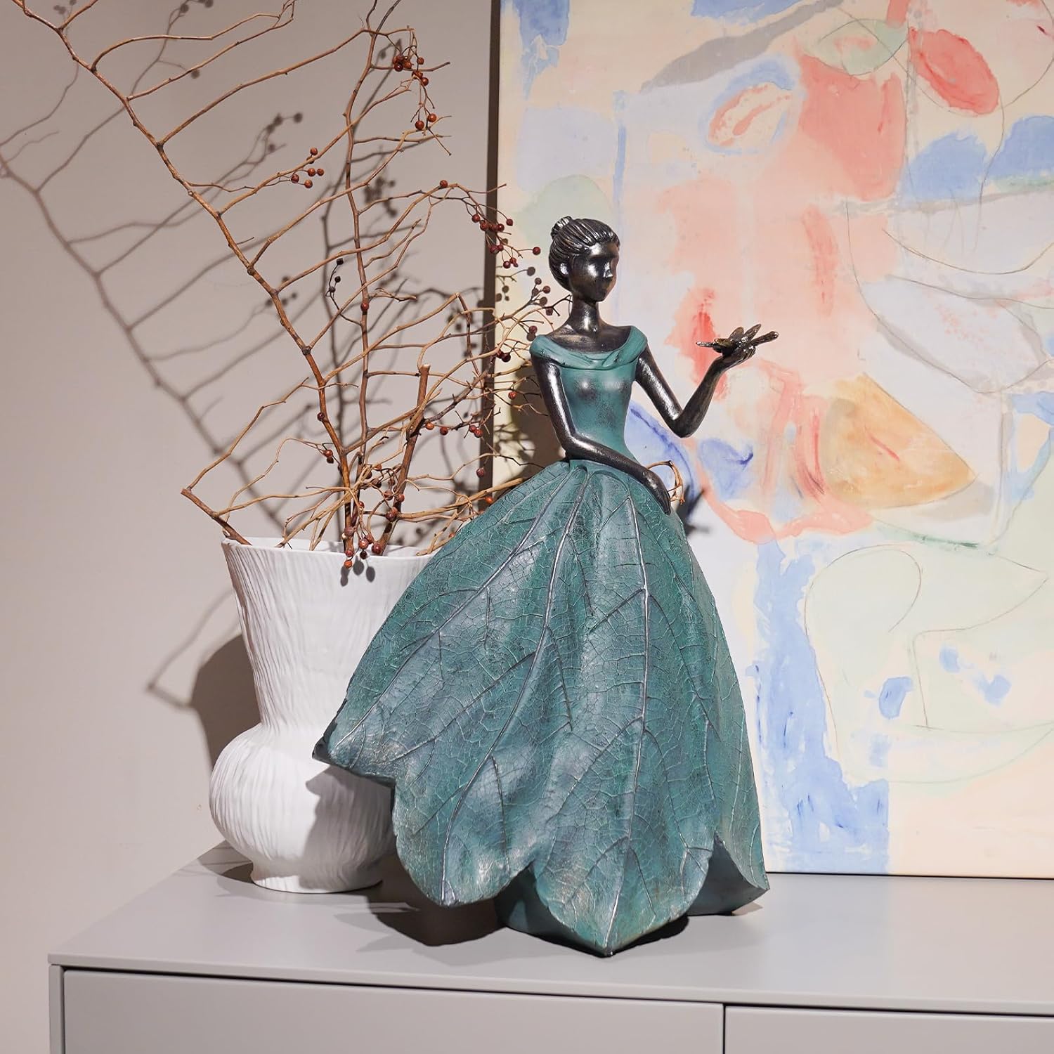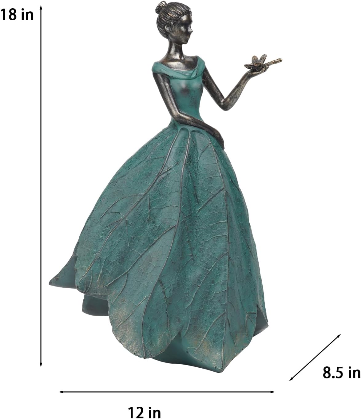 • Fairy Statue: Do you think your garden is too drab? Our leaf Angel girl statue with dragonfly product is originally designed by the designer. The skirt is in the shape of a leaf with the delicate texture of a leaf, which looks very artistic. It can add a different aesthetic feeling to your room or garden.