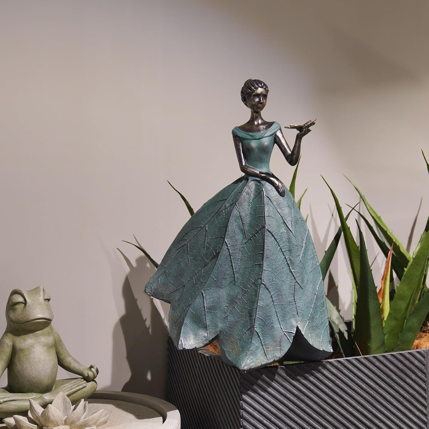 • Garden Statue: Our product has a large and small size, one is holding a lily, the other is holding a bird, you can choose according to your hobbies and needs.