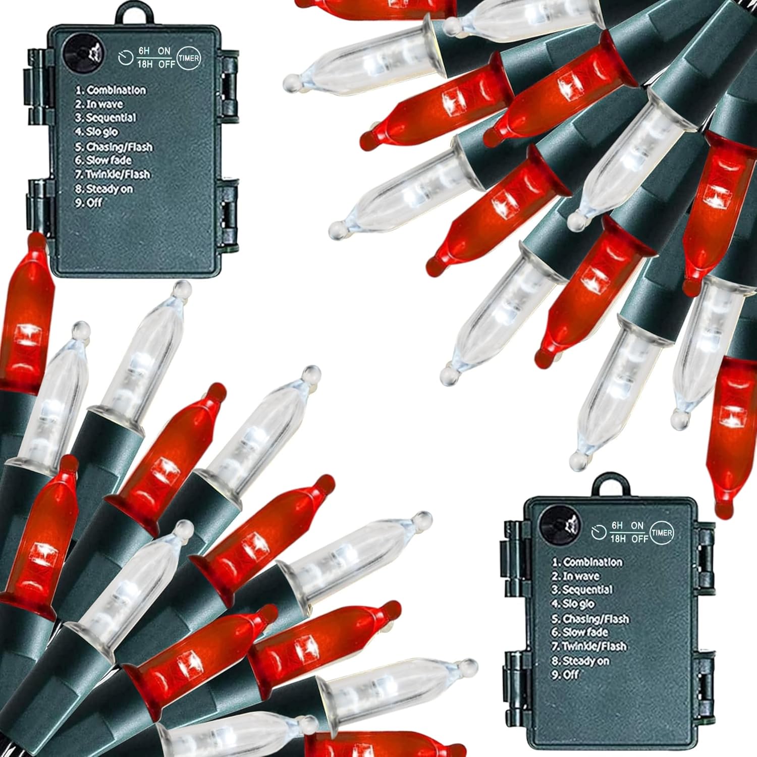 Dazzle Bright Battery Operated Christmas Lights, 2 Pack Total 32FT 100LED Clear Mini String Lights Waterproof with 8 Modes for Xmas Indoor Outdoor Yard Holiday Wedding Decorations (Red and White)