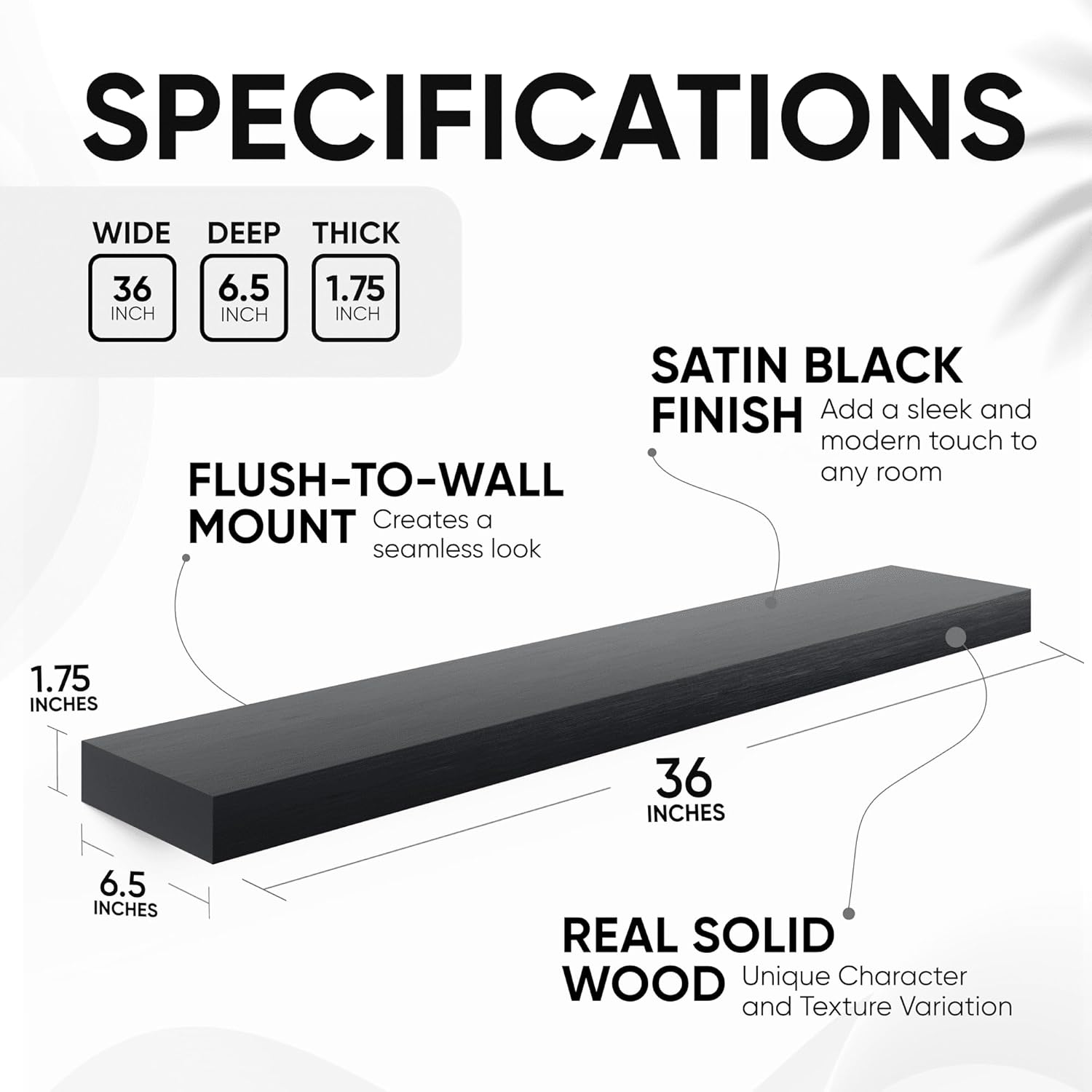 • AUTHENTIC WOOD GRAIN - Enjoy the timeless elegance of real wood. Handcrafted from the finest 1.75" Thick natural pine wood measuring 36" Wide x 6.5" Deep x 1.75". Our shelves highlight the inherent charm and durability of high-quality wood. Each Shelf reveals its unique character of knots and natural wood grain; each ledge is a little different but equally stunning.