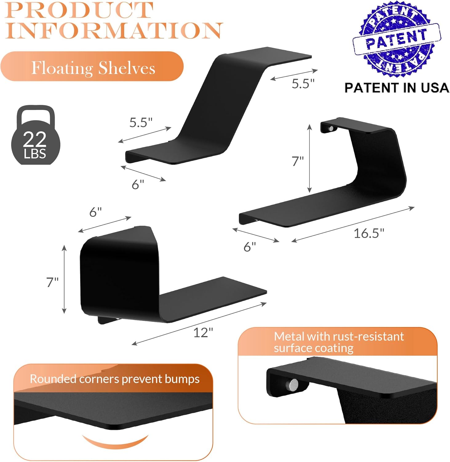 • High Quality Metal Materials Easy to Clean: The floating shelf from premium metal, it is not only easy to clean but remarkably durable. Its surface features an anti-rust coating for excellent oxidation resistance. The robust metal construction ensures it can bear significant weight without deformation. Just wipe gently with a rag, you can make it restore the original luster.