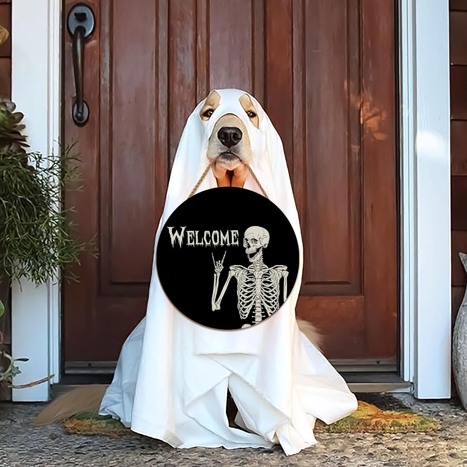 • Unique Halloween Flair: Adorn your exterior with the Skull Welcome sign, adding a captivating Halloween touch to your home. Elevate your Halloween celebrations with this exceptional hanging sign.