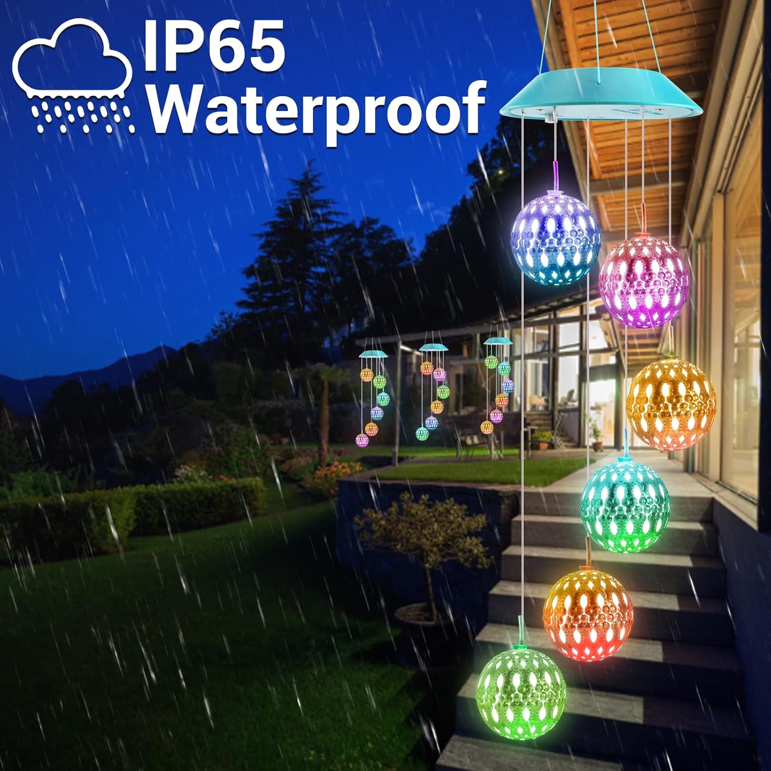 • 【Top Gift Idea】This lovely solar wind chimes will give a surprise to your friends and families. Top gift choice for Easter, birthday, mother day, Thanksgiving, Christmas, Memorial day. Color changing led balls will make romantic and enjoyable atmosphere. If any problems about products, please feel free to contact us via Amazon email box.