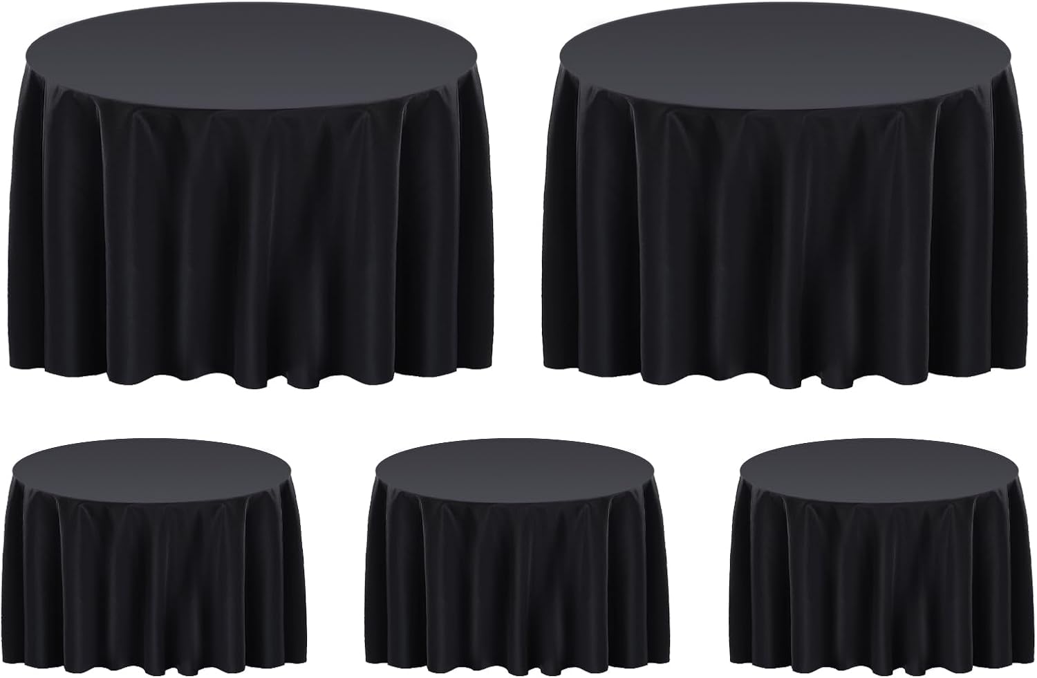 Surmente 132 inch Round Tablecloths -5 Pack Black Round Table Cloths, Polyester Fabric Table Covers for Wedding, Party, Banquet, or Restaurant