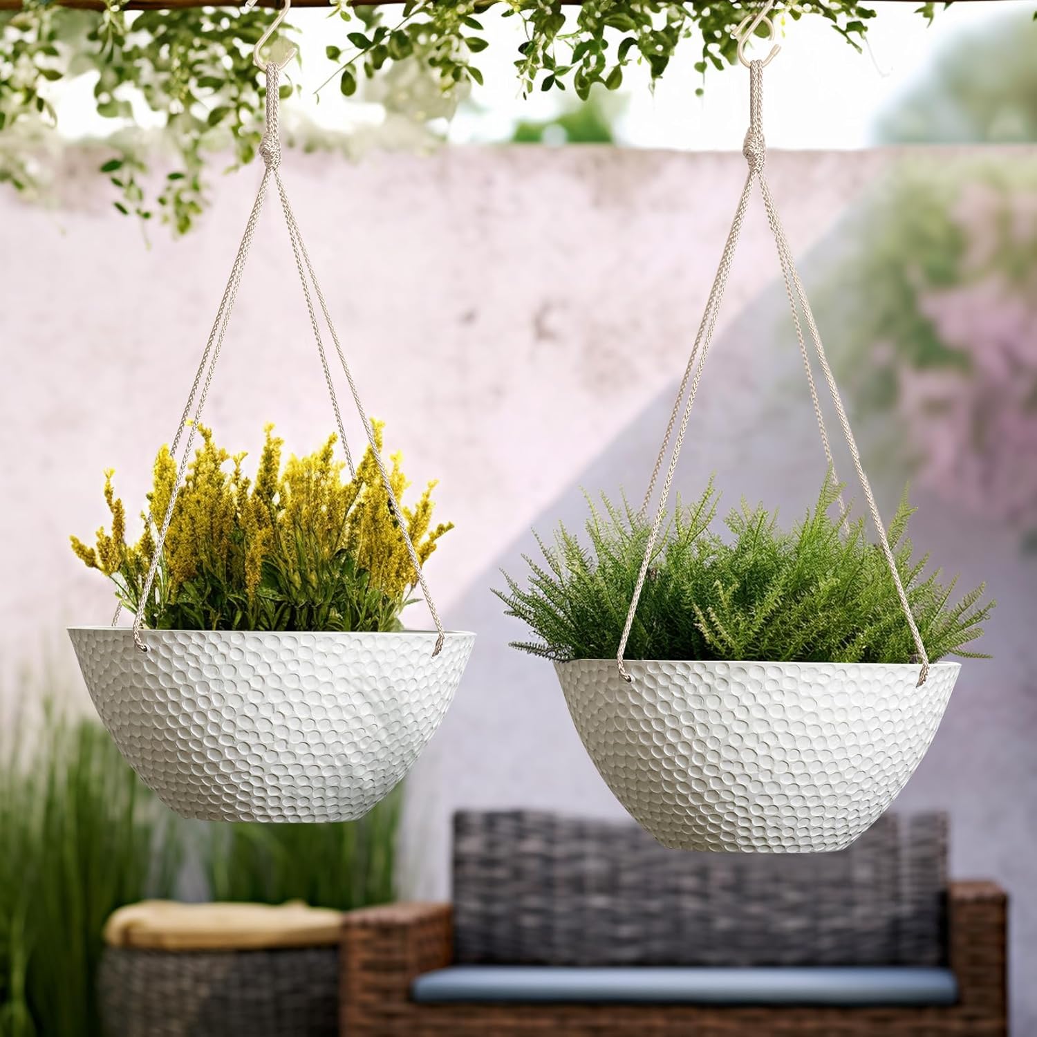 • WEATHER RESISTANT - Allow you to enjoy these hanging planters for outdoor plants in all types of weather. Built to withstand intense sun and harsh winter temperatures, free from fade, frost, crack and peel damage. Suitable for both outdoor and indoor uses.