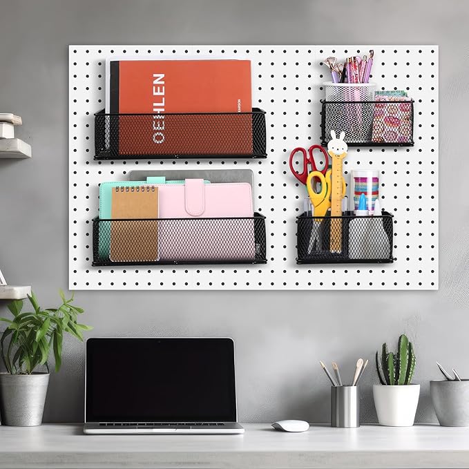 • Multiple Storage Purposes: these peg board baskets can be applied in garage, countertops, kitchens, basements, worktables, warehouses, stores and other places, suitable for storing and displaying tools, brushes, utensils, cables, etc., can be well implemented in storage and finishing, easy to use