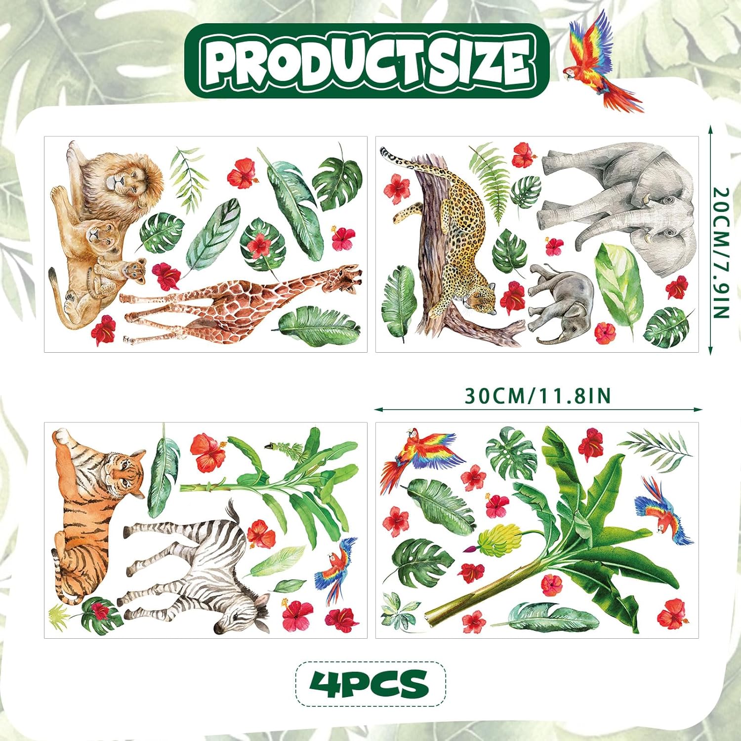 • GLOW SAFARI ANIMALS WALL DECALS:You will get 4 piece of luminous jungle animals wall decals in a set,including coconut tree,tiger,elephant,lion, giraffe,zebra, tropical plants and flowers patterns,which can turn your kid's room into a vivid and realistic animals world.