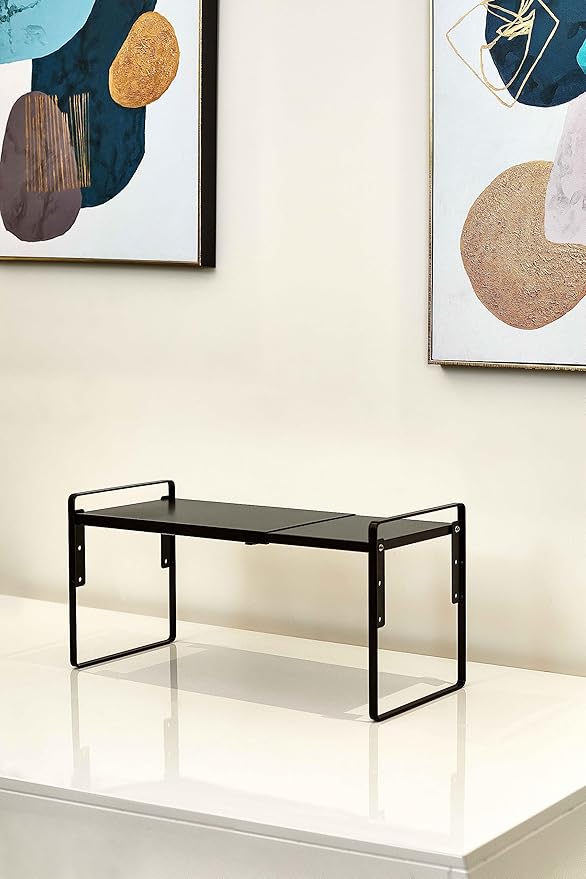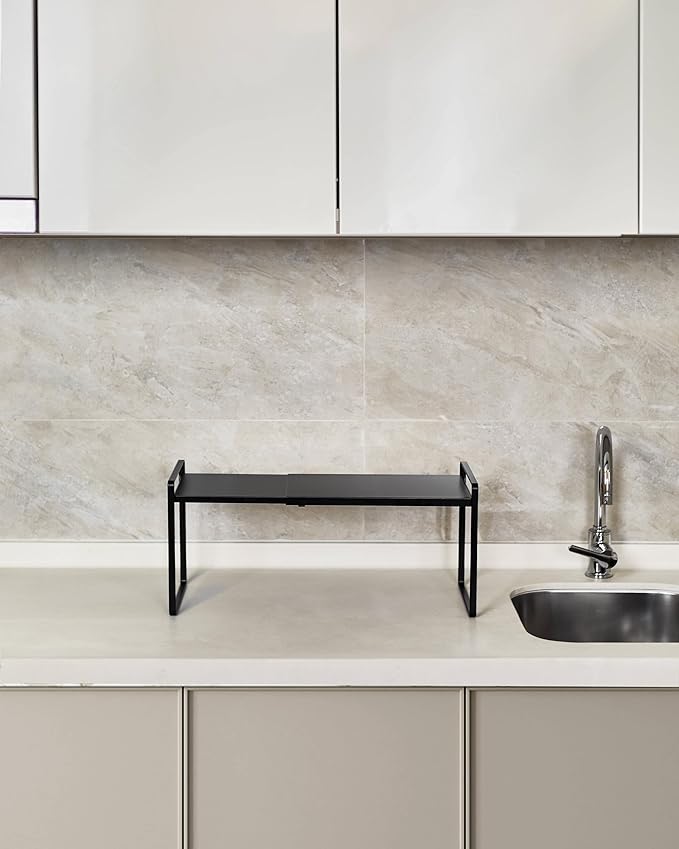 Nxconsu Cabinet Shelf Expandable Height Adjustable Organizer Riser for Kitchen Cabinet Pantry Cupboard Under Sink Countertop Organization Storage Space Saver Stackable Heavy Duty Metal Black XL
