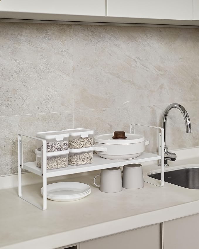 Nxconsu Cabinet Shelf Expandable Height Adjustable Shelf Organizer Riser for Kitchen Cabinet Pantry Cupboard Under Sink Countertop Organization Storage Space Saver Stackable Heavy Duty Metal White XL