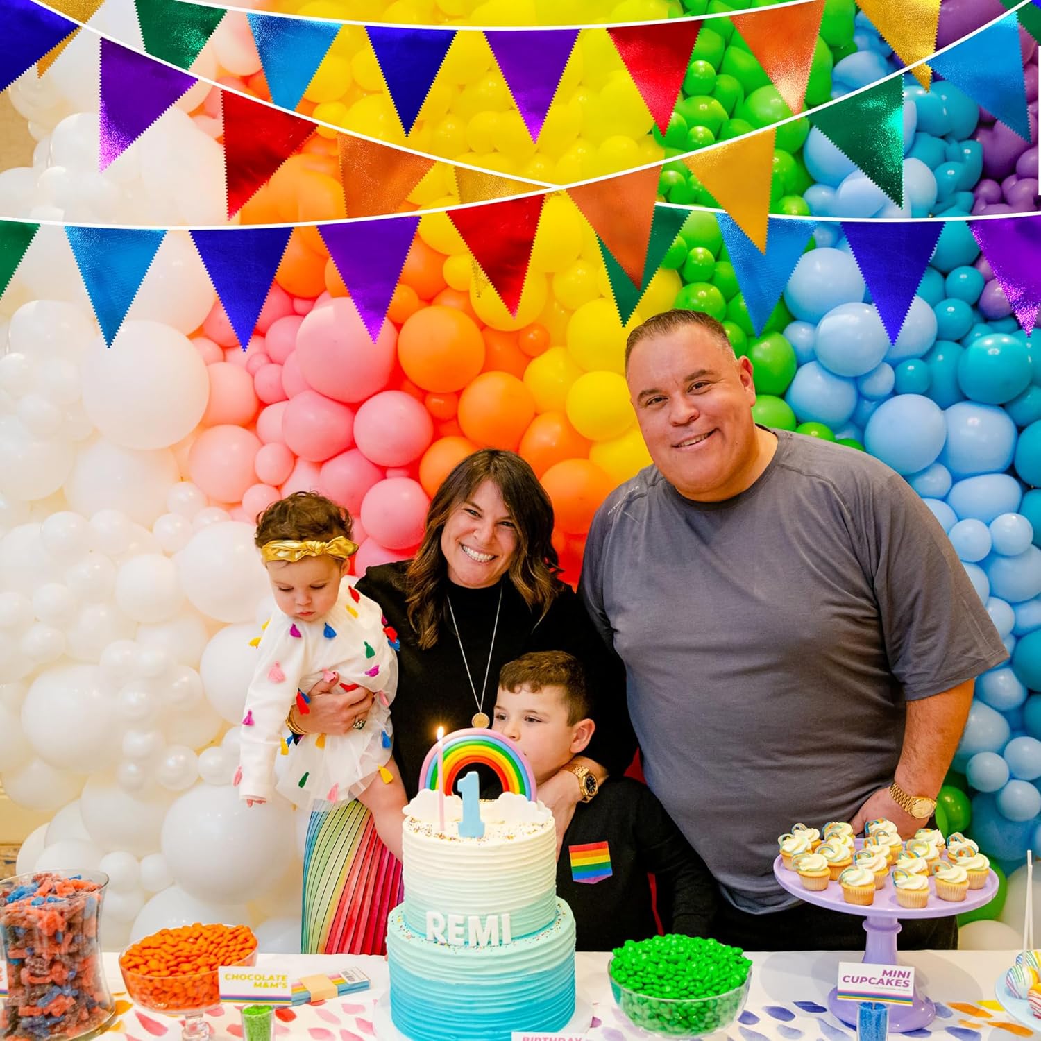 • 🔴PACKAGE CONTAINS- 1 packs of rainbow party metallic fabric pennant banner, Total 9.5meter/31feet with 35pcs flags.Size of each flag is 7.9 x 5.9 inch.