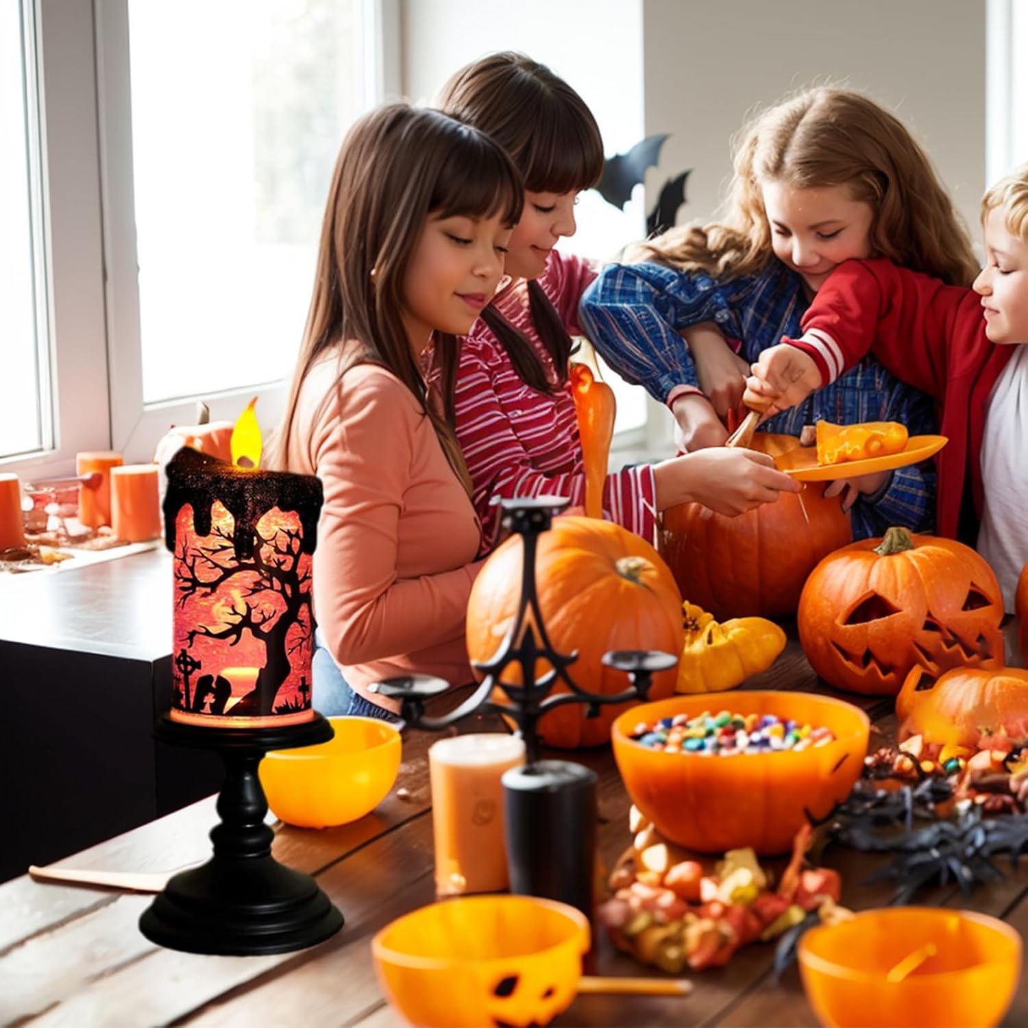 • 【Halloween Decoration Design】it’ s suitable as the Halloween decoration. Unique Halloween ghosts elements. Candle top flame flicker a warm yellow light when you turn on the candle, ,inside water will keep spinning with ghosts decal rotating together, create a spooky atmosphere in your home.
