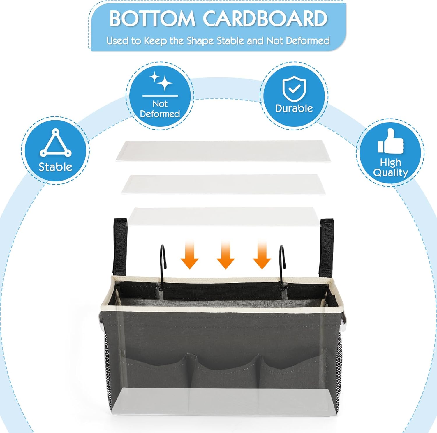 • 【Strong Bearing Capacity】In addition to the metal hook, the bedside organizer also added adjustable straps on both sides to help the bedside caddy to be additionally fixed in place, bottom cardboard added to hold basket shape, enduring enough to bear heavy weight and prevent sagging.