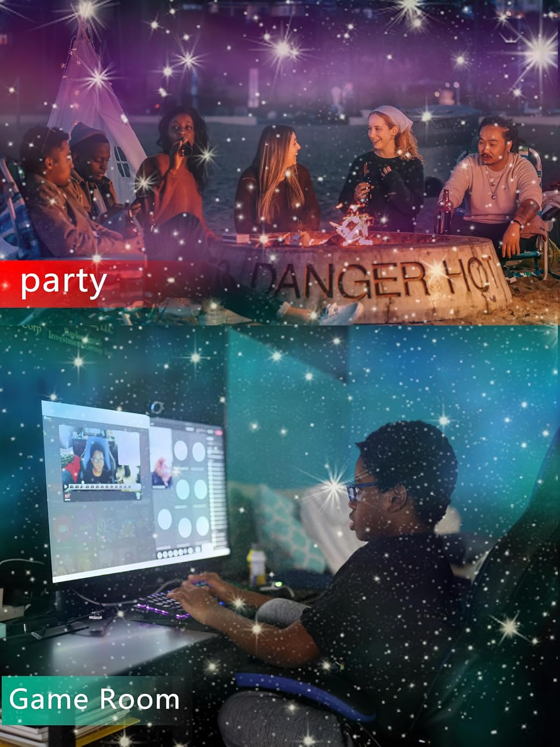 • Bluetooth 5.1 speaker and voice control: The Galaxy projector has a built-in Bluetooth speaker.Connect your device via Bluetooth, play music through the Galaxy Light projector, and watch in surprise as the little stars twinkle and the nebulae move rhythmically to the beat. While you enjoy music, gradient lights would truly bring you party atmospher.It must be a favourable gifts Christmas.