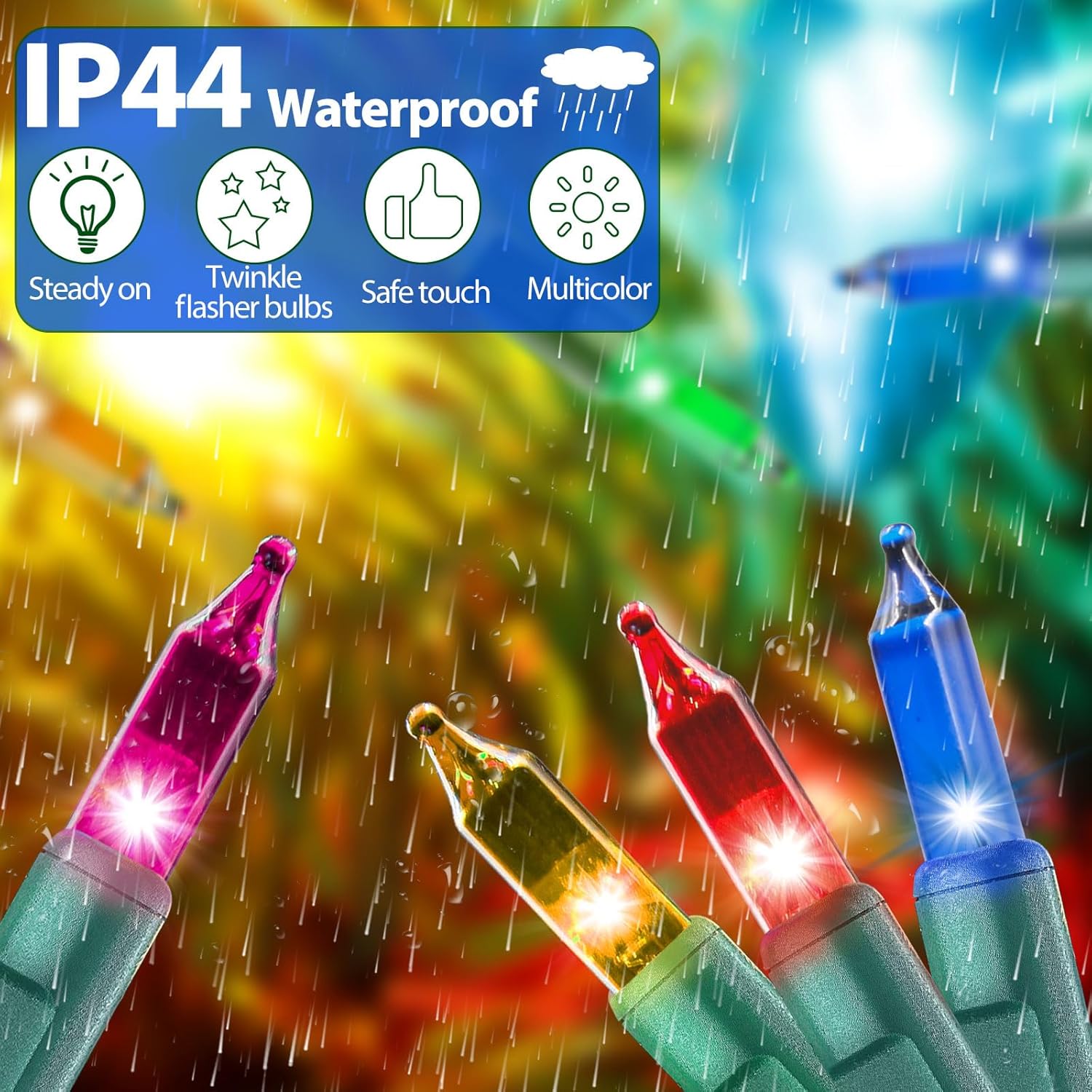 • UL Listed Sturdy and Safe: Made of high-quality materials, these charming lights are waterproof and resistant to leakage. They are also UL listed, providing peace of mind and safe use throughout the holiday celebration. They are very sturdy and have an average life of 2,500 hours.