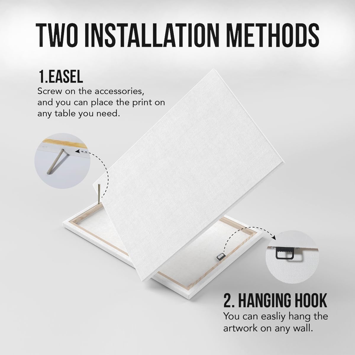 • Wall & Tabletop Decoration: Each modern wall art painting has hooks installed on the back, making it easy to hang anywhere you want to display it. In addition, there is a stand accessory. After simple installation, it can be placed on a flat surface such as a desktop or shelf.