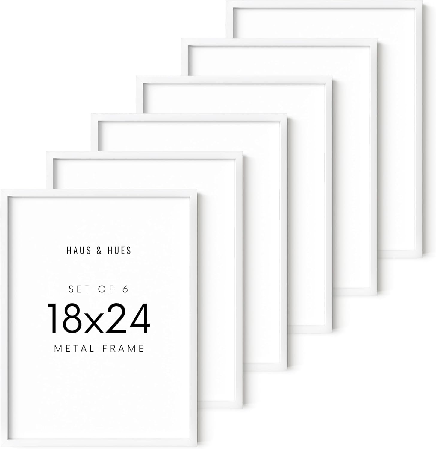 HAUS AND HUES 18x24 White Metal Picture Frames - Features Premium Aluminum, Vertical & Horizontal Hang, Shatterproof Plexiglass - Perfect for Home, Room, Office (18x24 in, White, Set of 6)