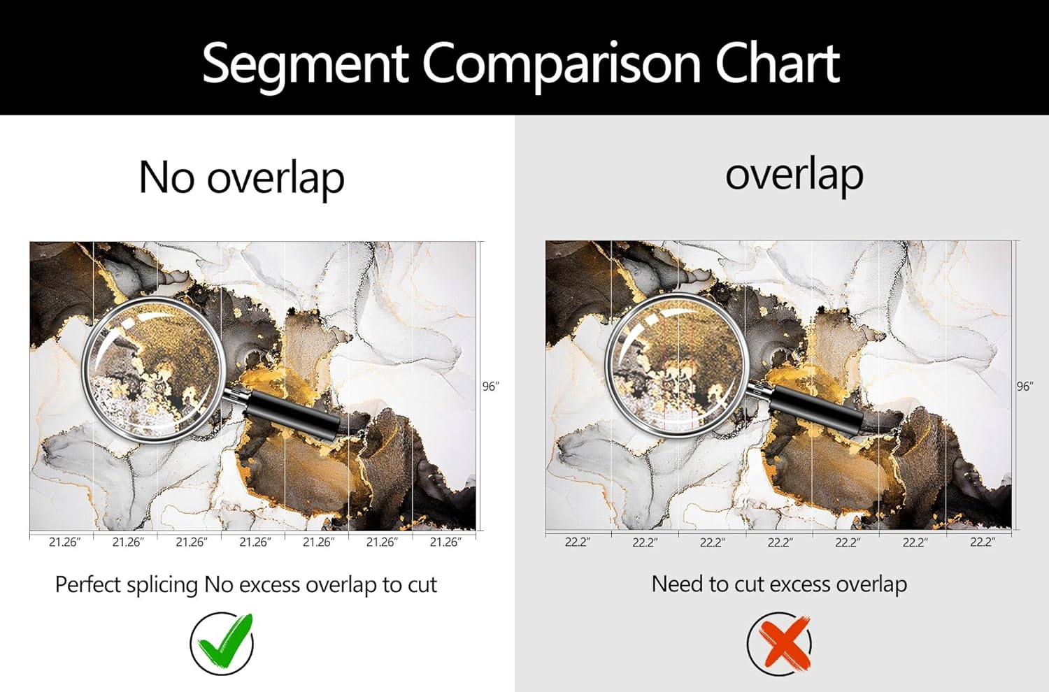 • Mural Size: The total size of this mural wallpaper is 149" x 96" / 378CM x 244CM (W x H), cut into 7 pieces, each measuring 21.26" x 96", for easy installation.