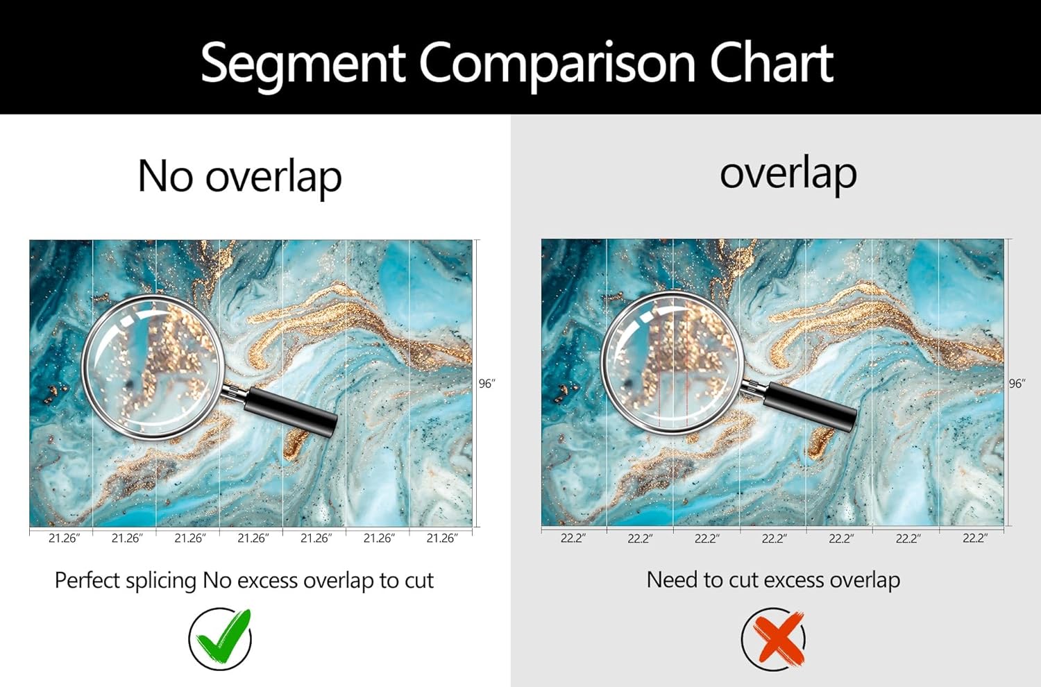 • Mural Size: The total size of this mural wallpaper is 149" x 96" / 378CM x 244CM (W x H), cut into 7 pieces, each measuring 21.26" x 96", for easy installation.