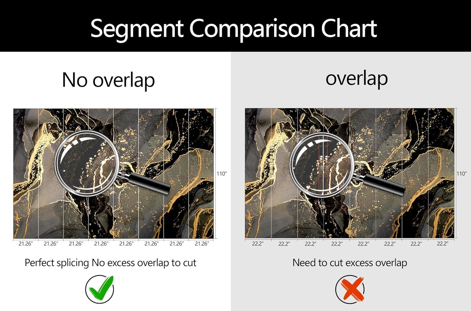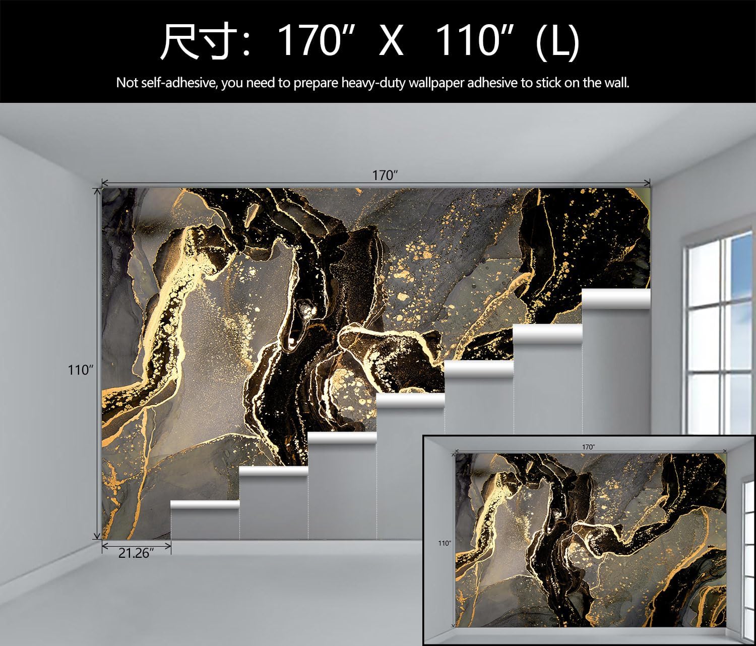 • Mural Size: The total size of this mural wallpaper is 170" x 110" / 432CM x 280CM (W x H), cut into 8 pieces, each measuring 21.26" x 110", for easy installation.