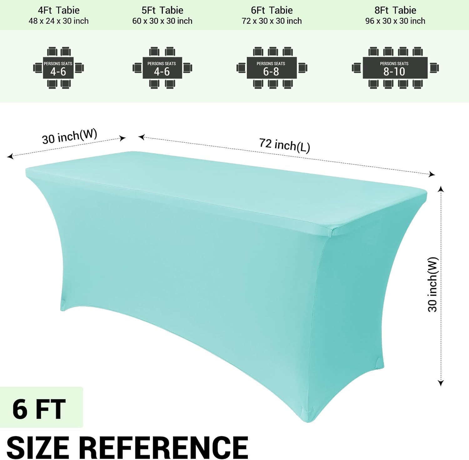• Tables Type: Banquet folding tables measuring: 72" Length x 30" Width x 30" Height. Uses: Wedding, Party, Event, Banquet, Decoration, Outdoor, Exhibition, Decoration