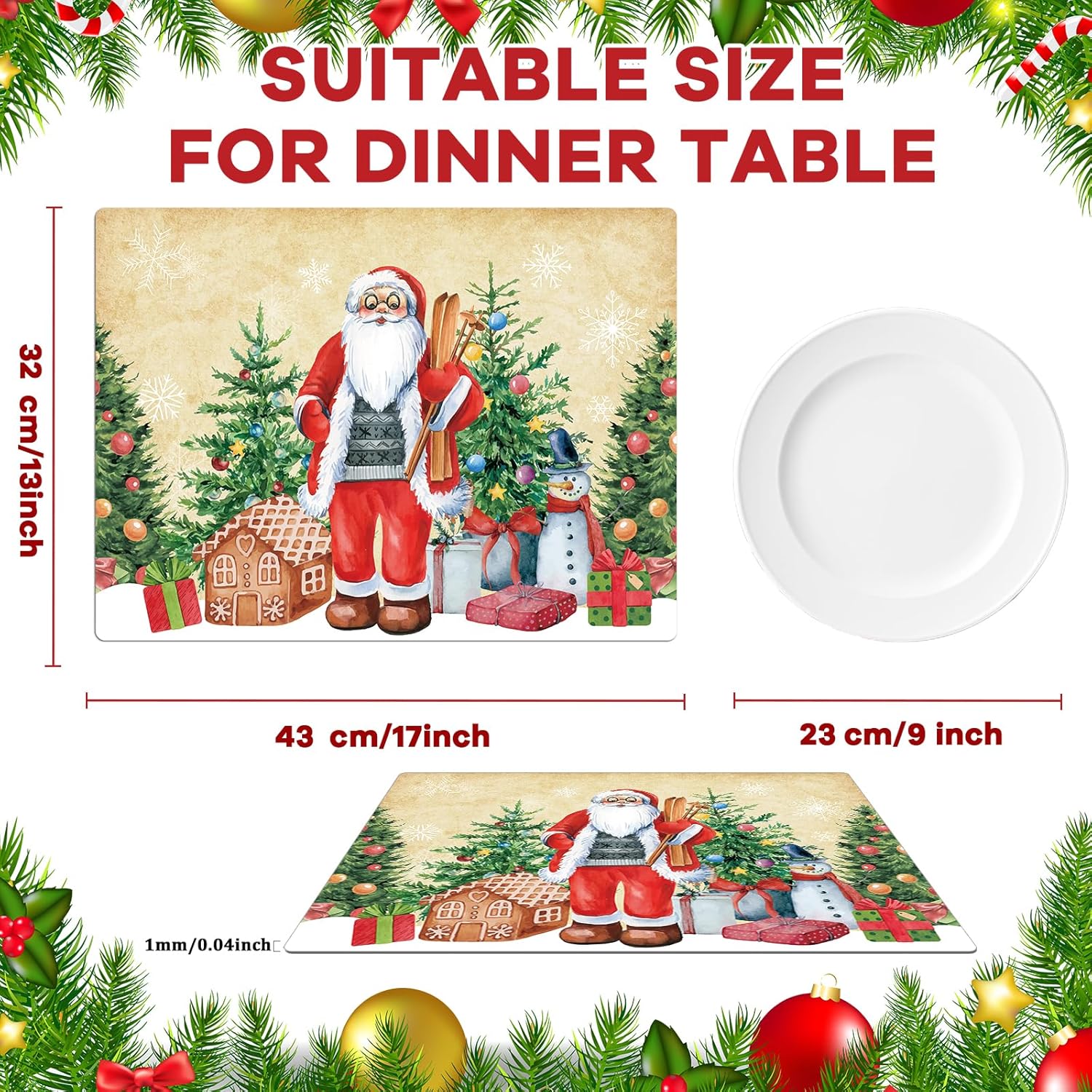 • 【Eye-Catching Design】Elevate your Christmas theme dining experience with our Retro Christmas placemats! The design of the Christmas placemat incorporates retro elements of the Santa Claus, Christmas tree, Gingerbread man and so on. Christmas plastic placemats add a touch of brilliance to your table setting. Impress your guests and create an unforgettable cheerful atmosphere for your party.