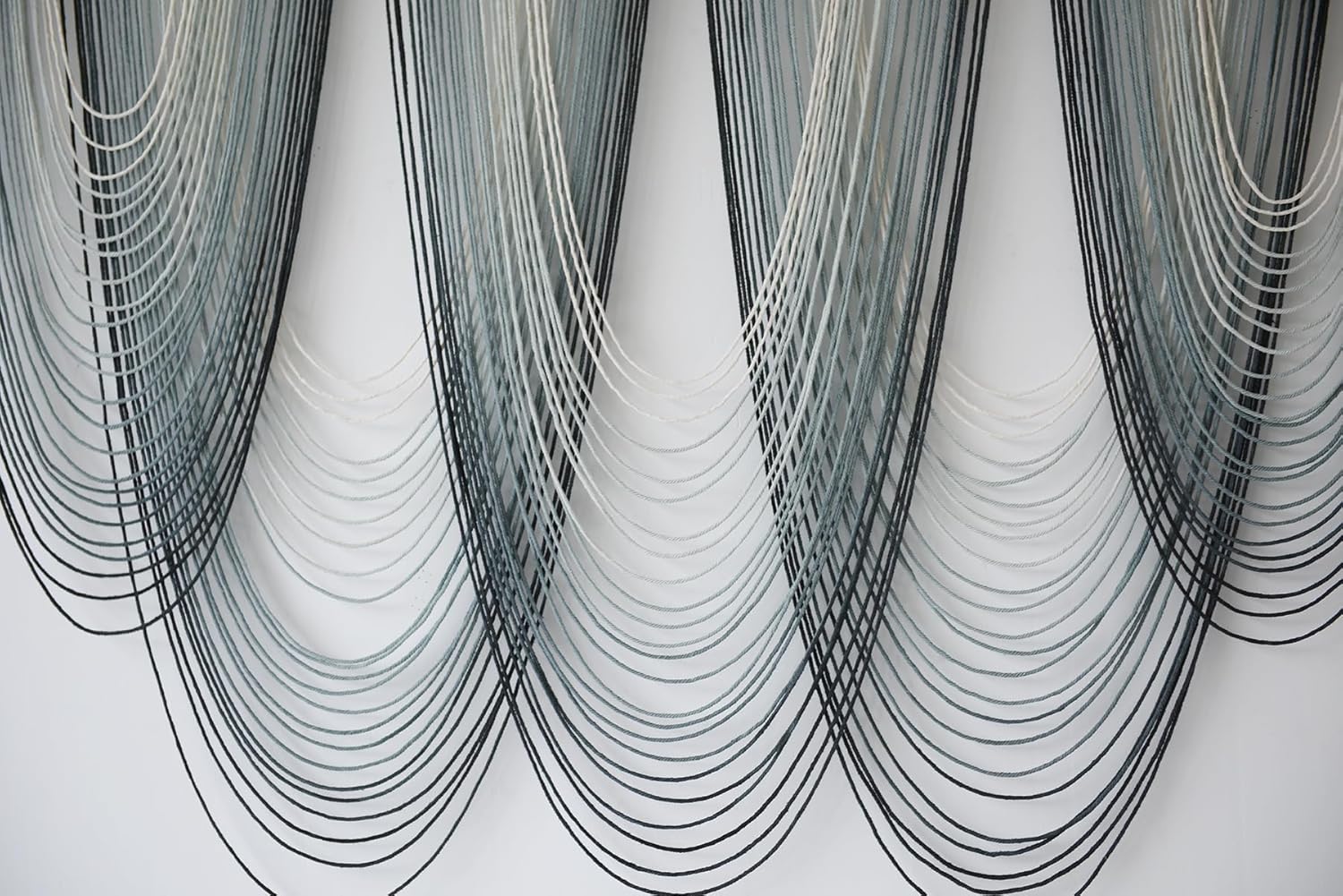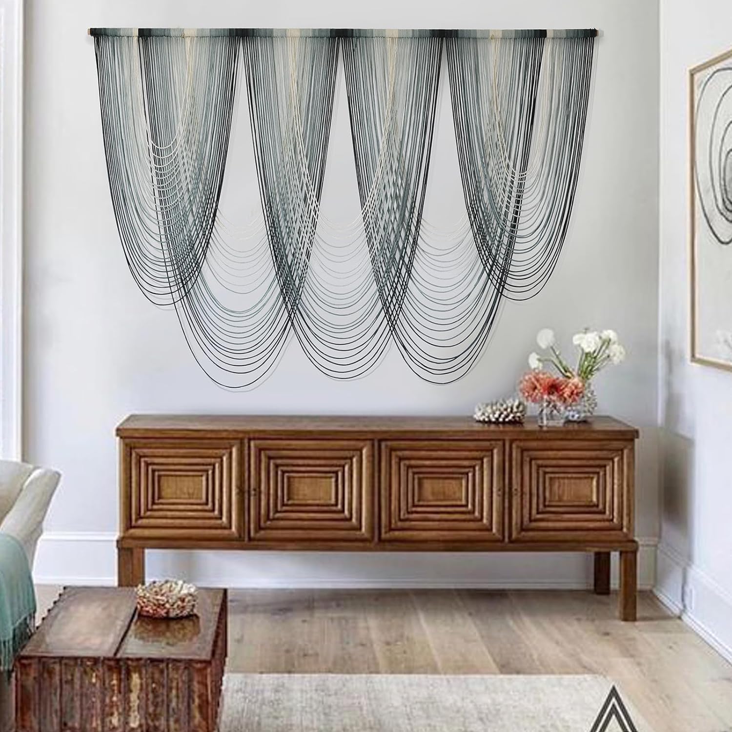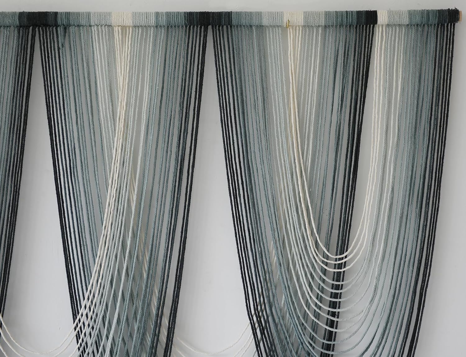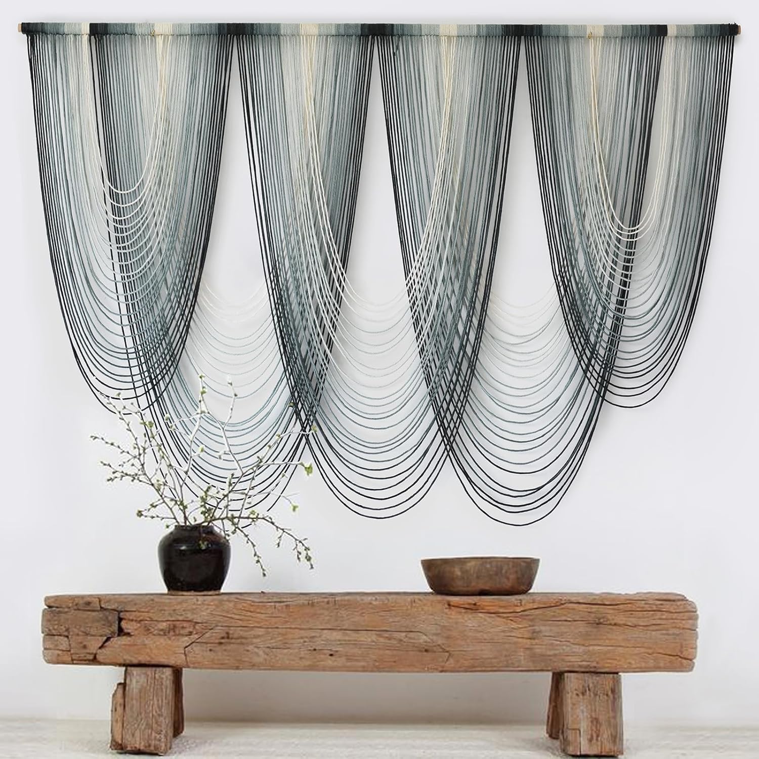 • Dip dye macrame wall hanging: a one-of-a-kind dip-dyed fiber art decor tapestry, made of natural macrame cord cotton and features black and teal then ivory ombre macrame. The fiber art wall hanging has five swoops to create this unique look.