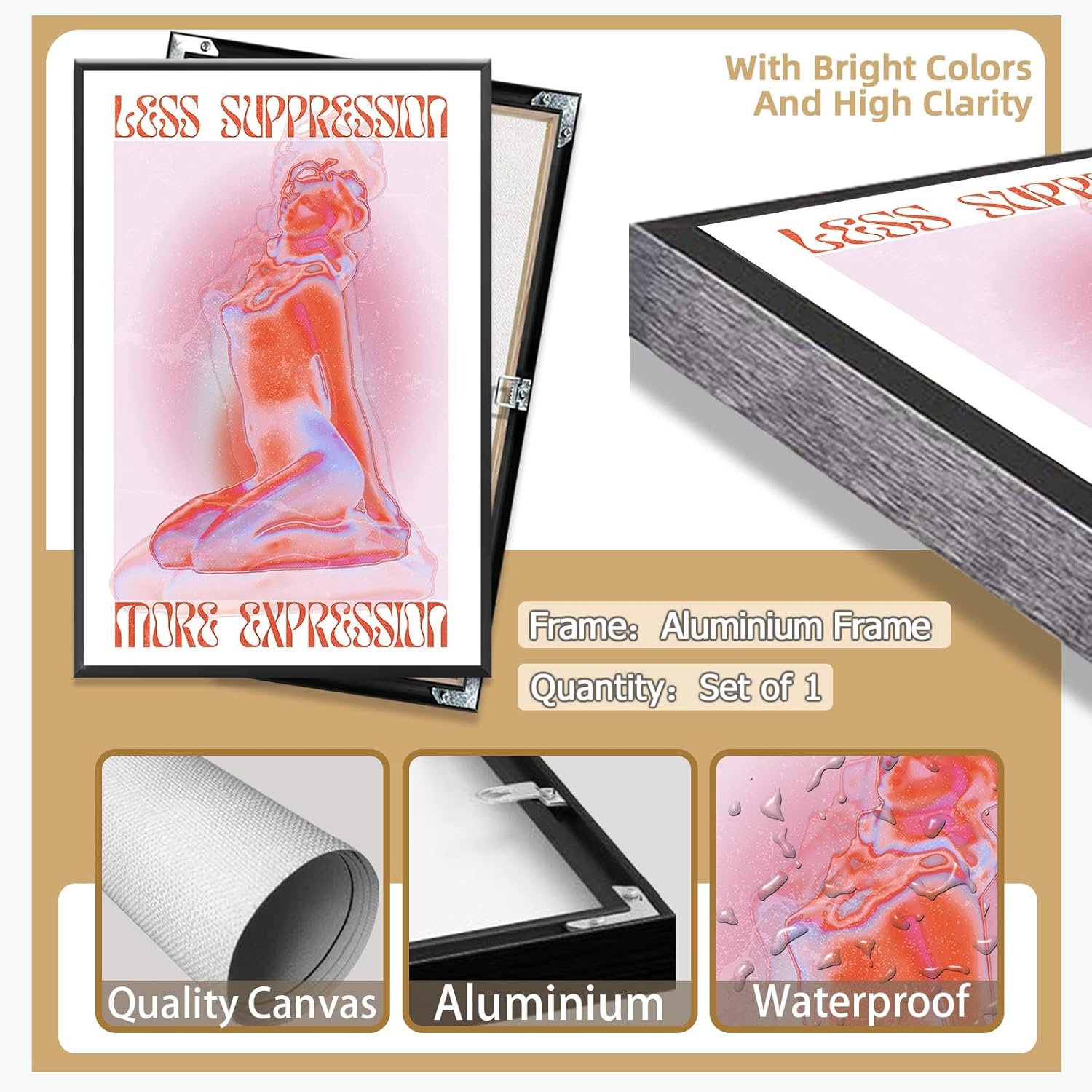 Spiritual Affirmation Art Poster Pink Woman Canvas Wall Art Aesthetic Pictures Sexy Woman Prints Painting Trendy Gradient Aesthetic Wall Decor Living Room Bedroom 16x24in Framed
