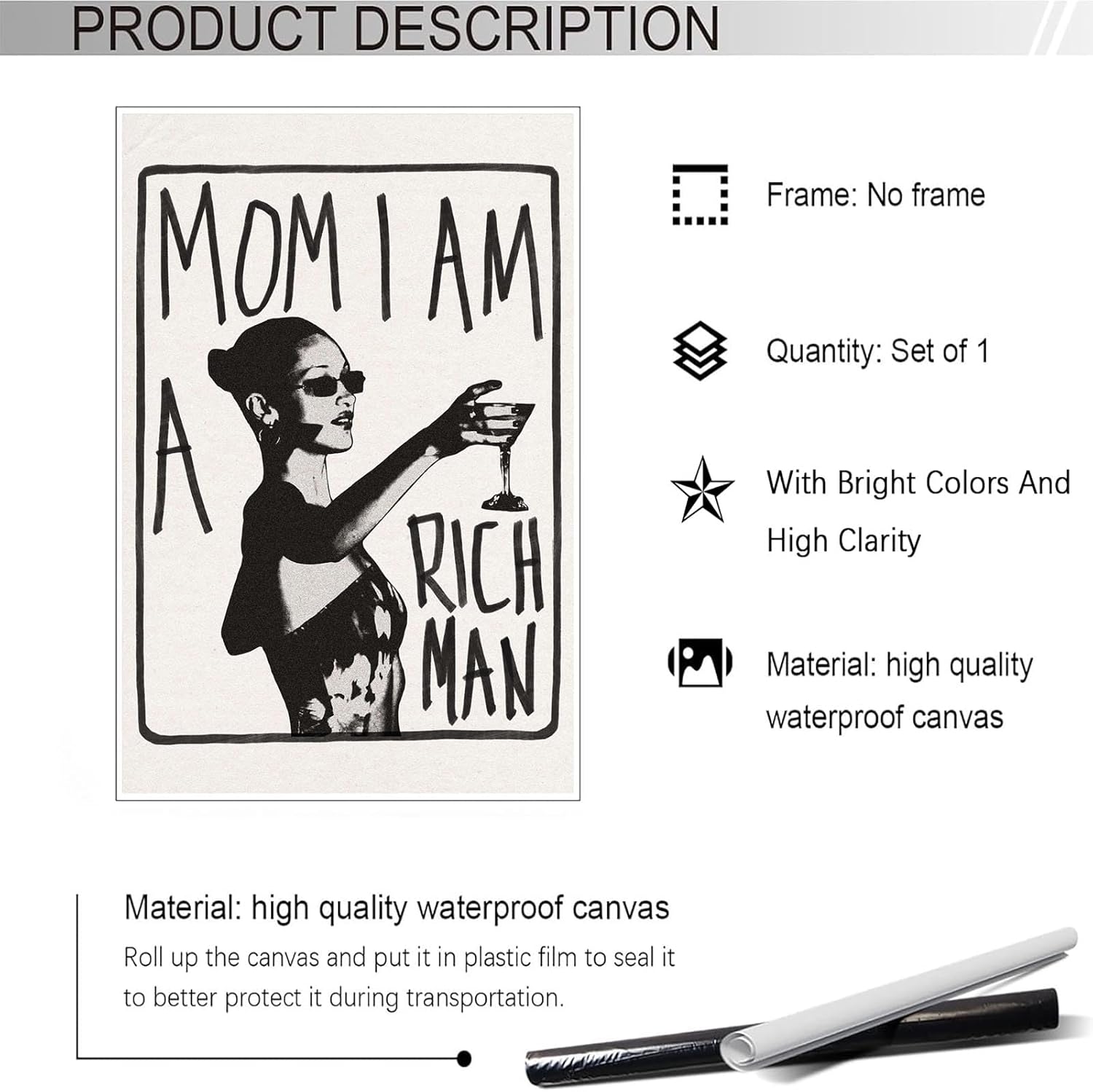 Liyark Mom I Am A Rich Man Aesthetic Retro Music Goblet Poster Feminist canvas Wall Art Vintage Bar Cart Wall Decor Preppy Dorm Decor Unique Wall Art prints painting 12x16in Unframed